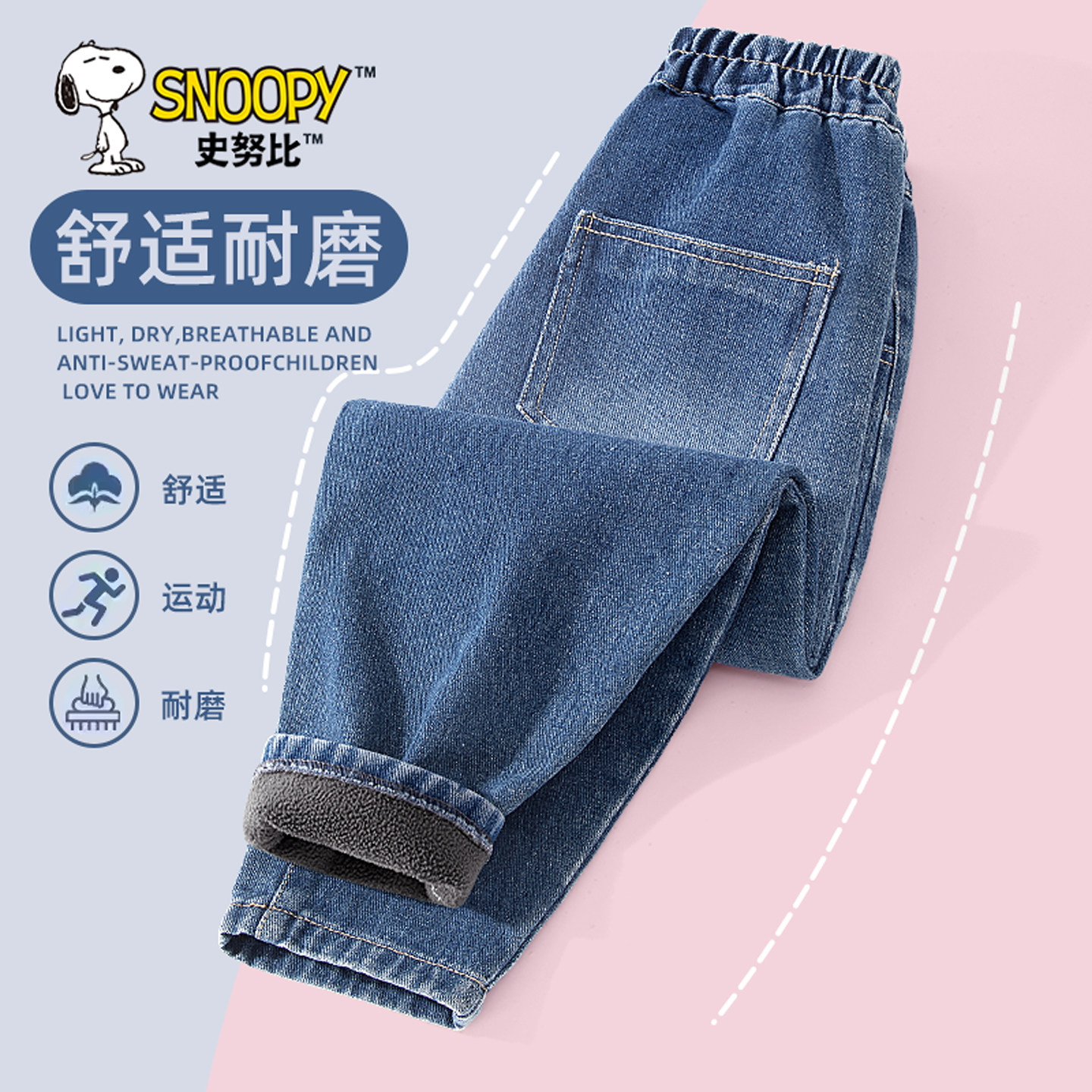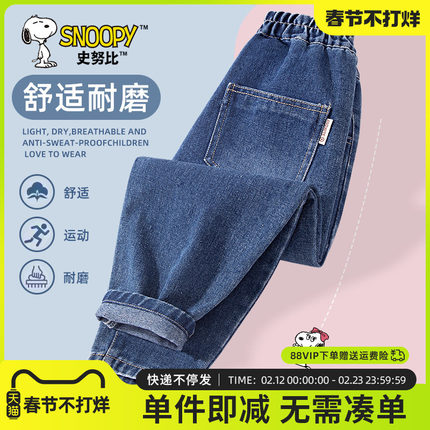 史努比女童牛仔裤2026新款薄款长裤女孩春季萝卜裤春秋款儿童裤子