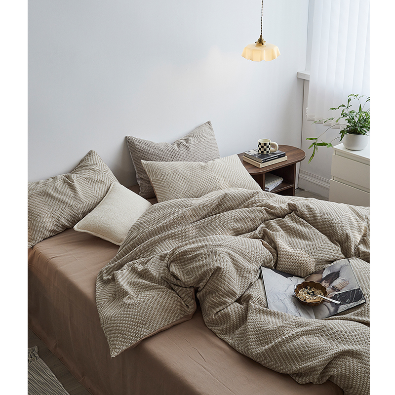 美式松软华夫多线格全棉床上用品四件套 北欧简约床单被套床笠款