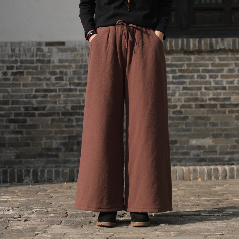 原创布衣阔腿老棉裤棉麻保暖裤秋冬宽松不紧绷夹棉裤女外穿大棉裤
