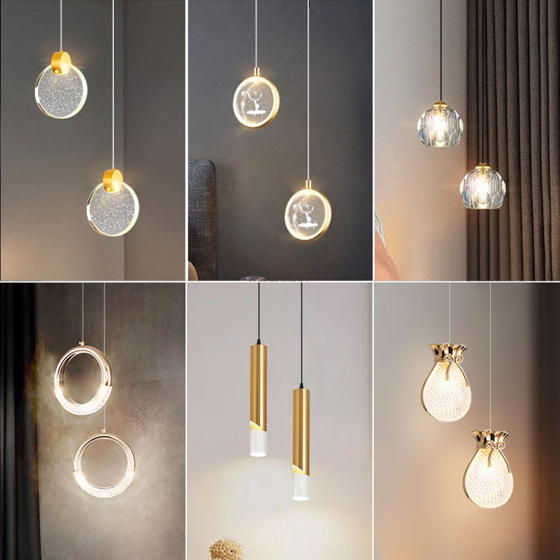 卧室双头床头吊灯现代简约创意轻奢水晶艺术灯单头主卧长线小吊灯