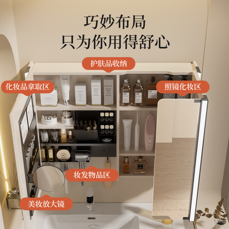 心海伽蓝WX914529单独镜柜美妆折叠镜法式浴室配插座镜柜