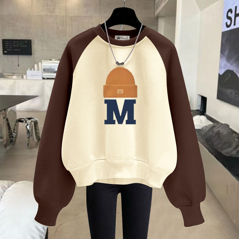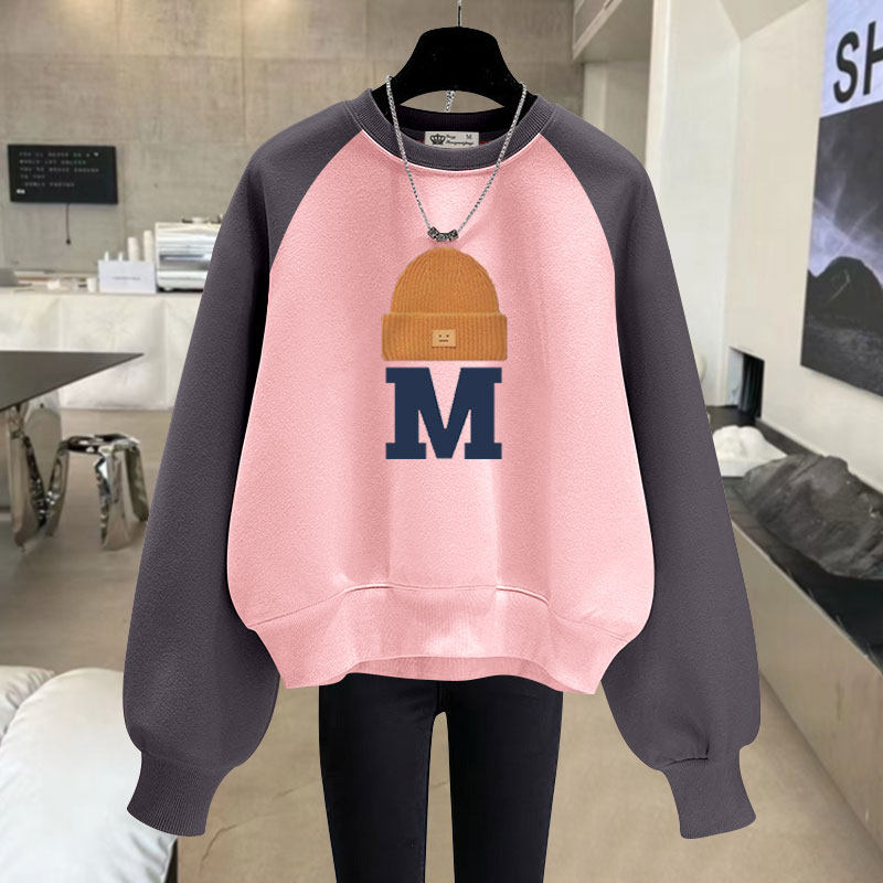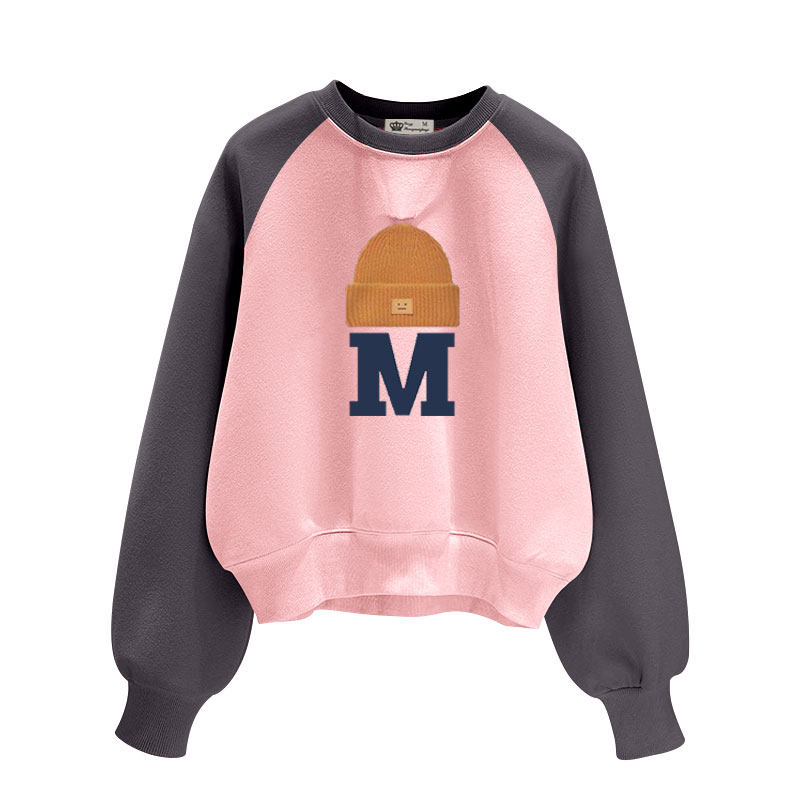 设计感字母圆领短款卫衣女2025春秋冬宽松慵懒风加绒加厚长袖套头