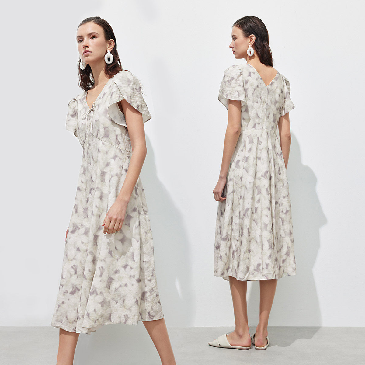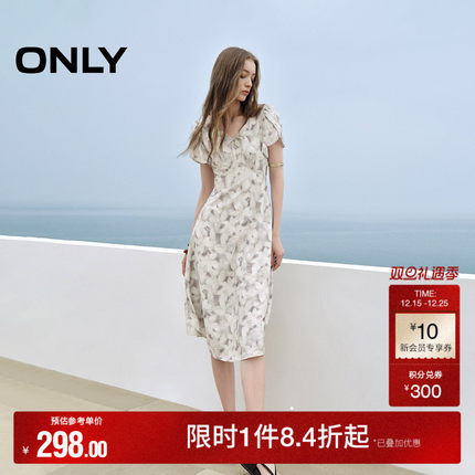 ONLY2025秋冬新款法式度假风荷叶飞袖V领修身伞裙长裙连衣裙女