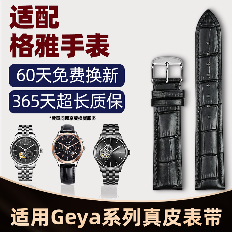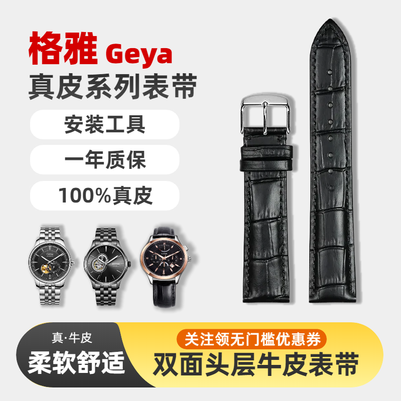 格雅Geya手表带适配真皮男女士牛皮表链代用蝴蝶扣接口18 20mm