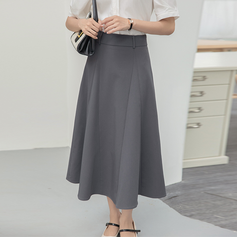 灰色西装伞裙女春秋工作面试高腰a字长裙职业裙子抗皱工装鱼尾裙