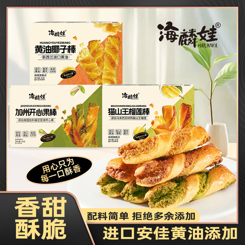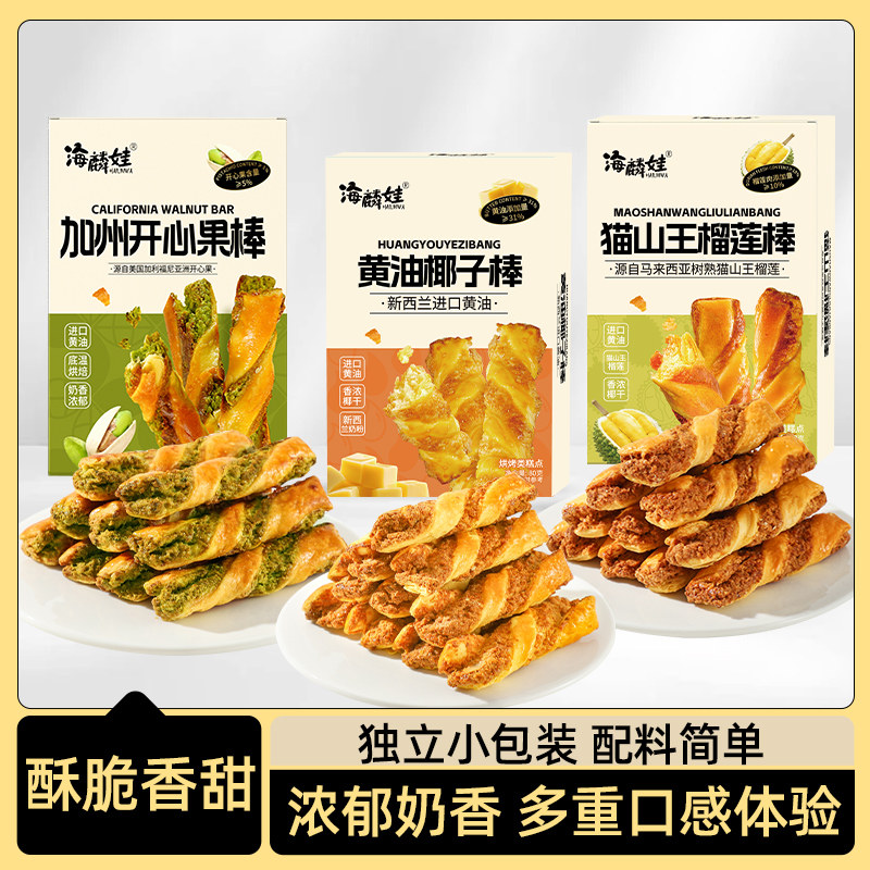 加州开心果棒猫山王榴莲棒黄油椰子棒椰丝独立包装香酥解馋小零食
