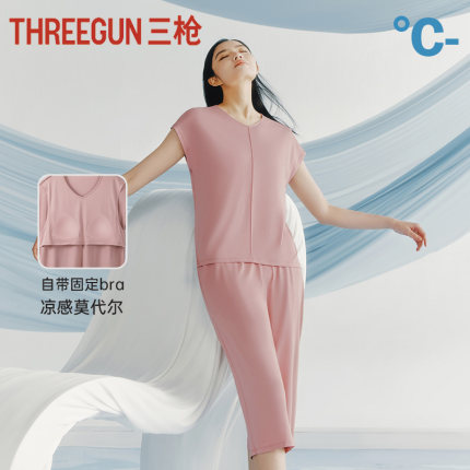 三枪女士莫代尔棉轻薄带胸垫睡衣