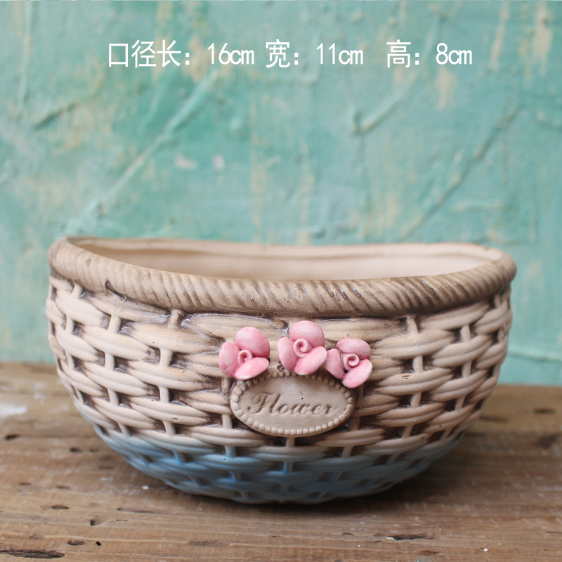 仿藤编草编柳编陶瓷花盆创意手提花篮多肉盆栽组合粗陶透气壁挂盆