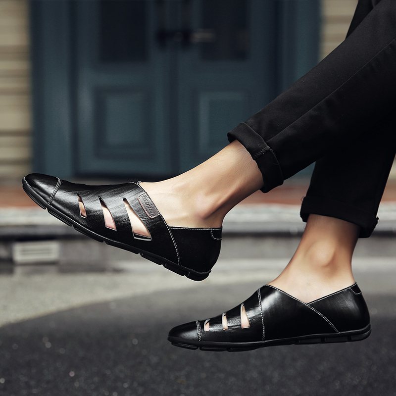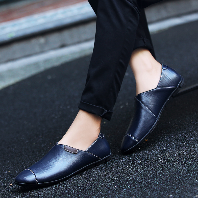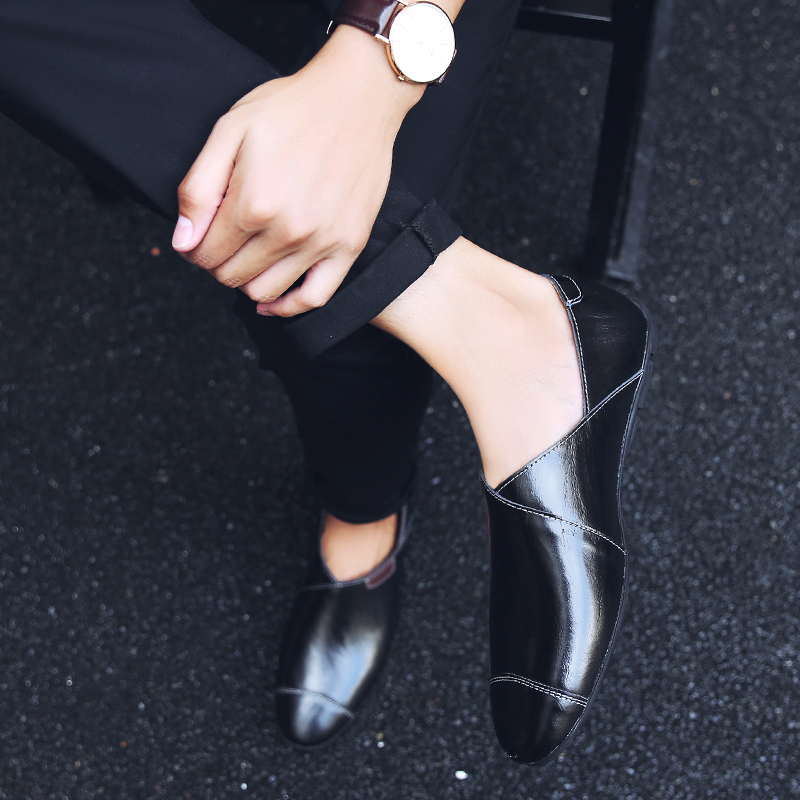 皮鞋男韩版大码青年懒人鞋春季真皮休闲鞋时尚男鞋夏季豆豆鞋潮鞋