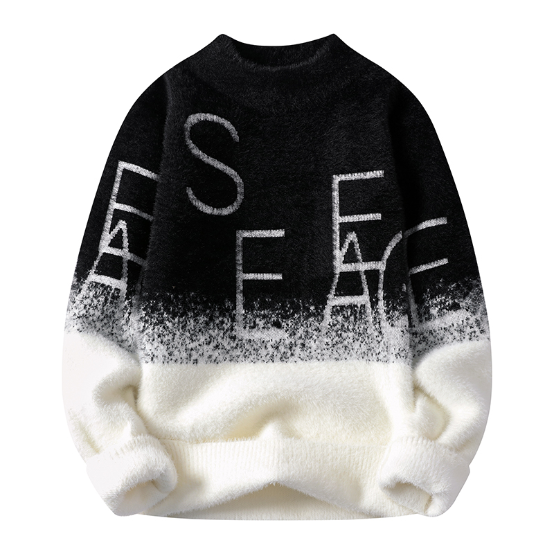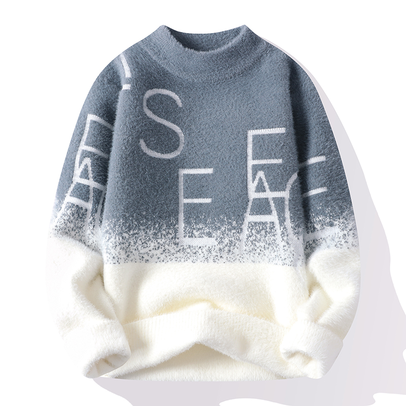 半高领毛衣男款冬季加厚保暖内搭宽松潮流休闲渐变色针织打底衫