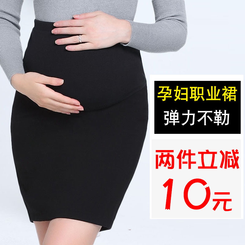 孕妇春秋冬工装一步裙孕妇正装上班职业包臀秋季半身裙黑色短裙子