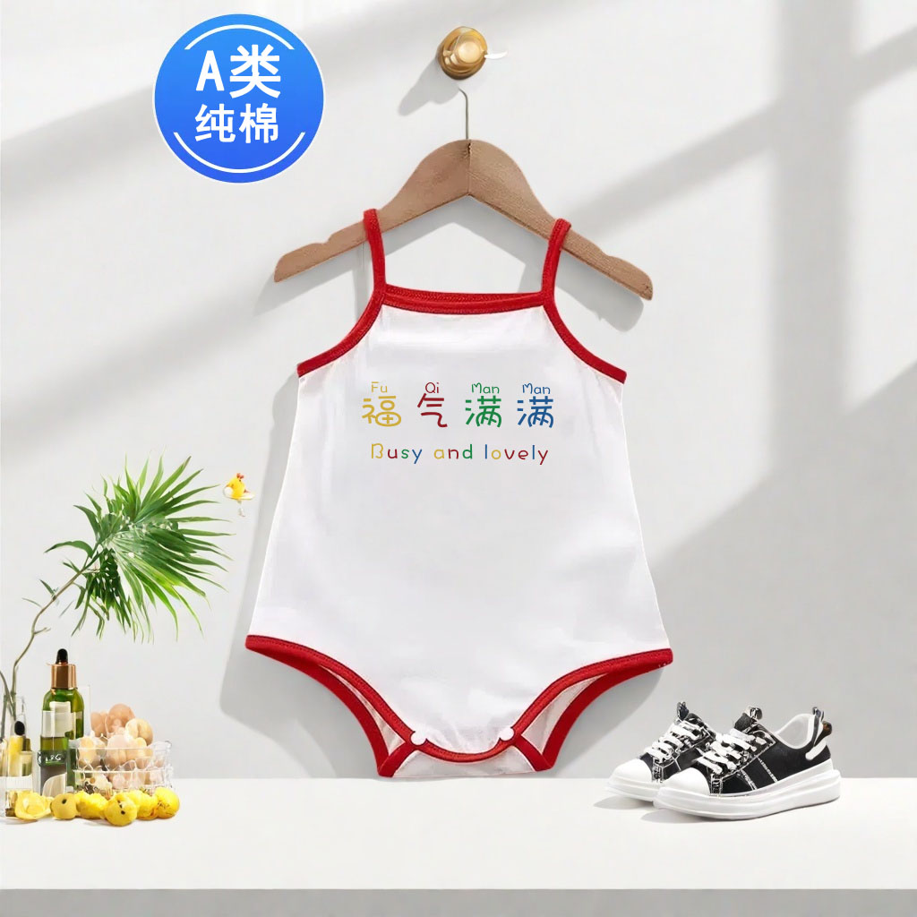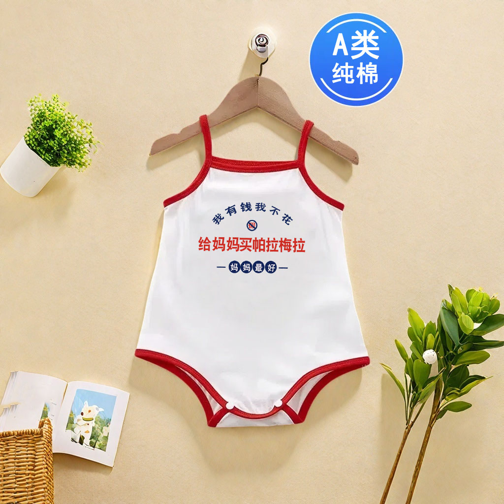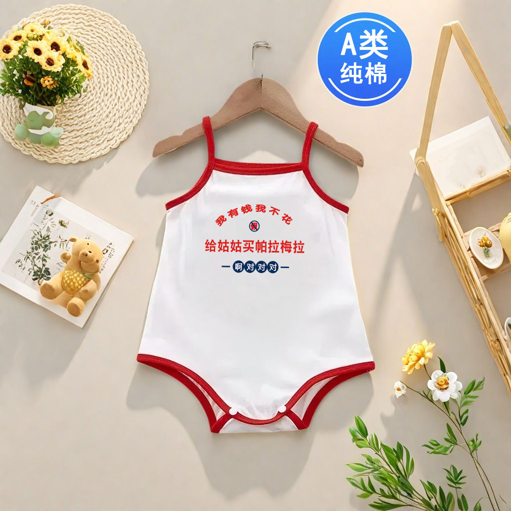 大姨迟早是个富婆~0-1岁新生婴儿宝宝A类纯棉无袖吊带背心连体衣