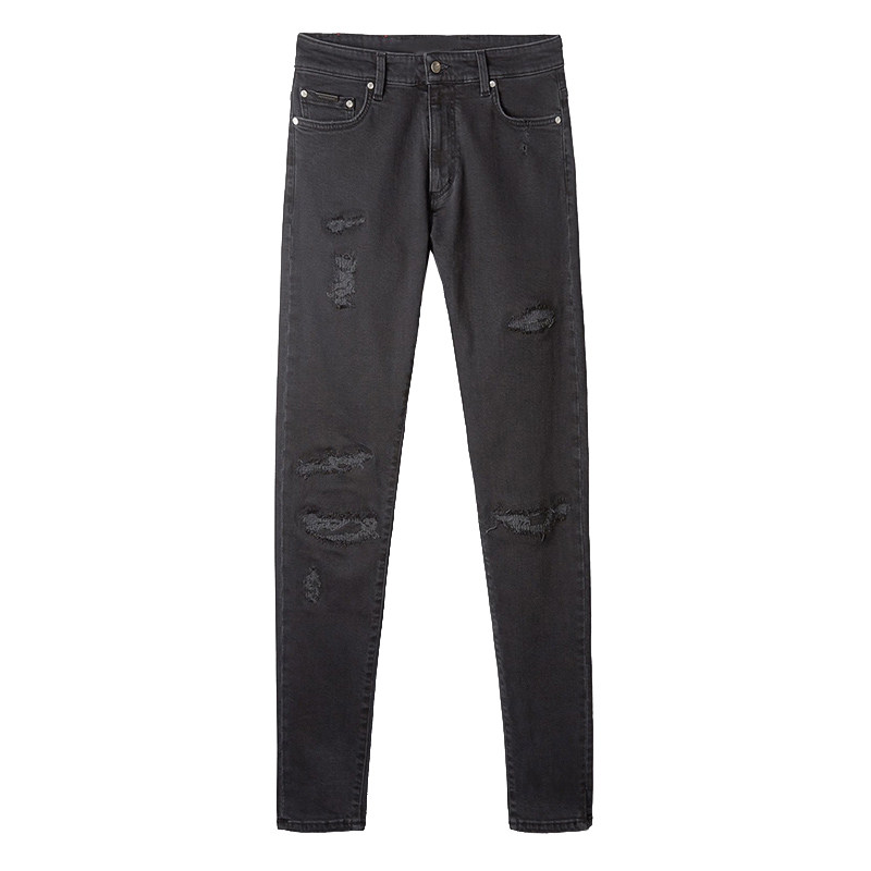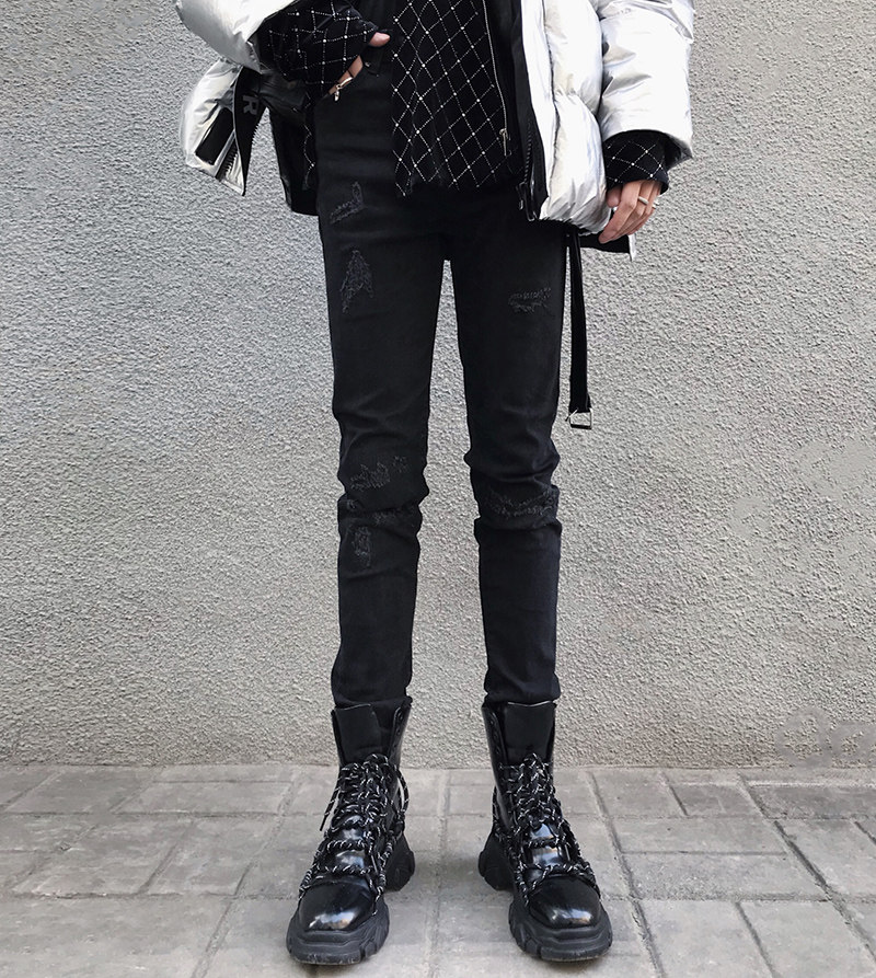 杨一帆男韩版潮流暗黑系男款破洞牛仔裤ins网红修身小脚裤子黑色