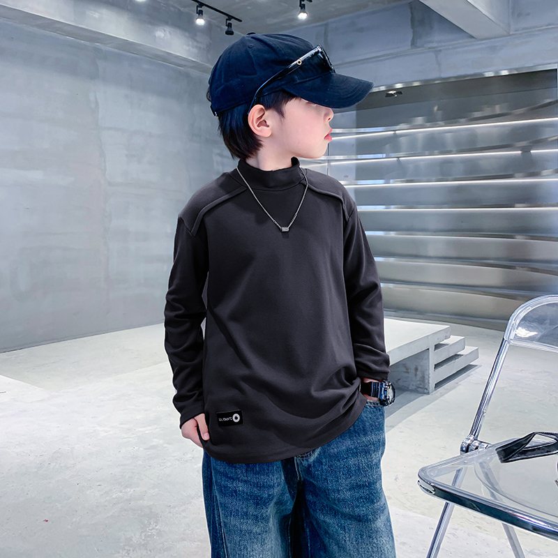 男童白色半高领打底衫秋冬2025新款上衣儿童冬季长袖内搭保暖T恤