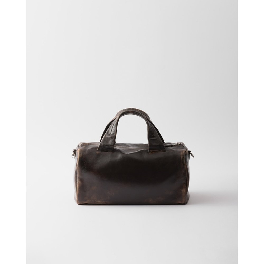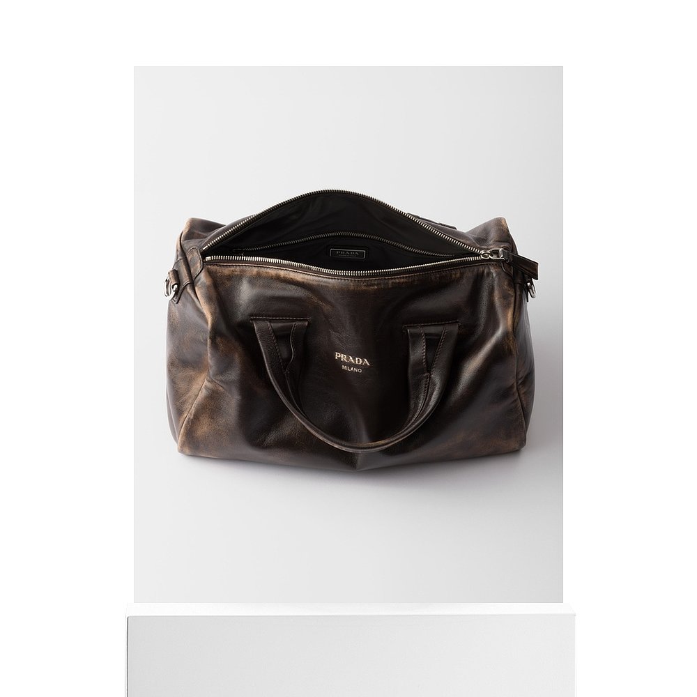 自营欧洲直邮Prada普拉达 男士深棕色羊皮logo标识拉链闭合运动包