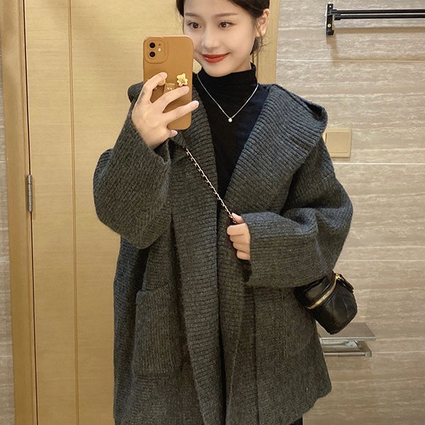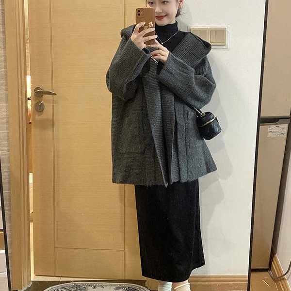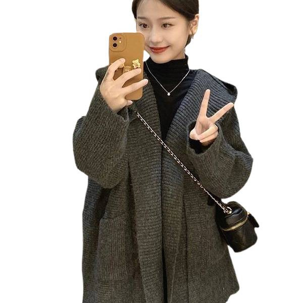 女装秋套装连帽加厚大码针织开衫外套中长款秋冬新款韩秋冬季女装
