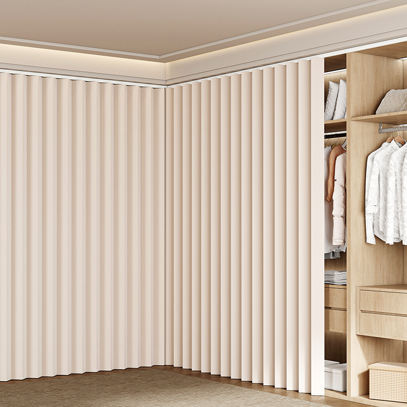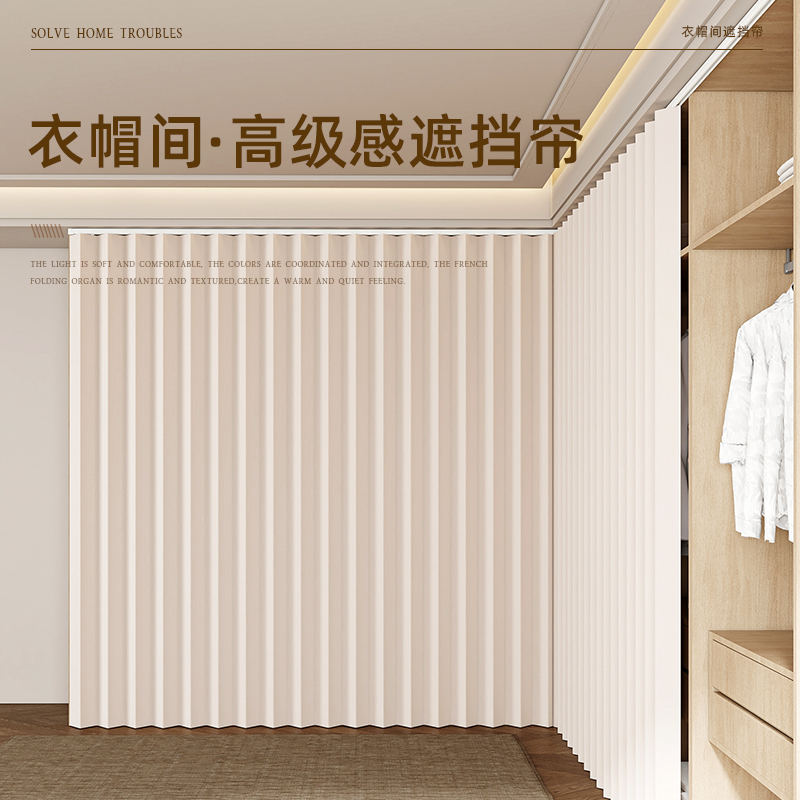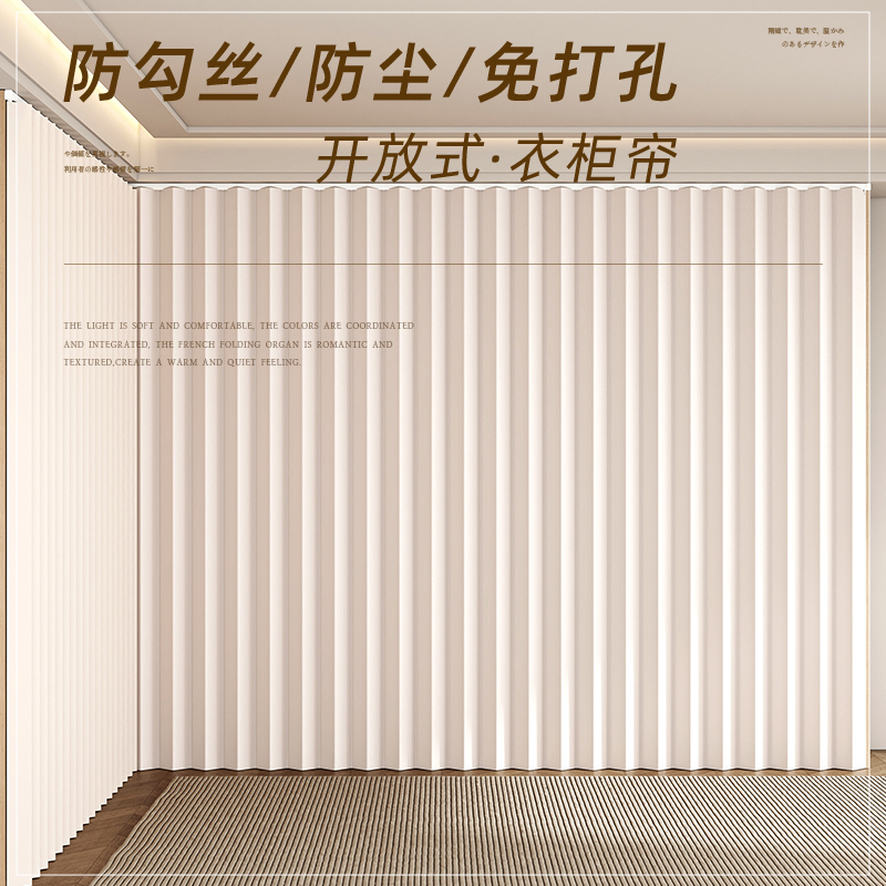 高级感衣帽间防尘帘开q放式衣柜遮挡帘免打孔自粘轨道橱柜折叠门
