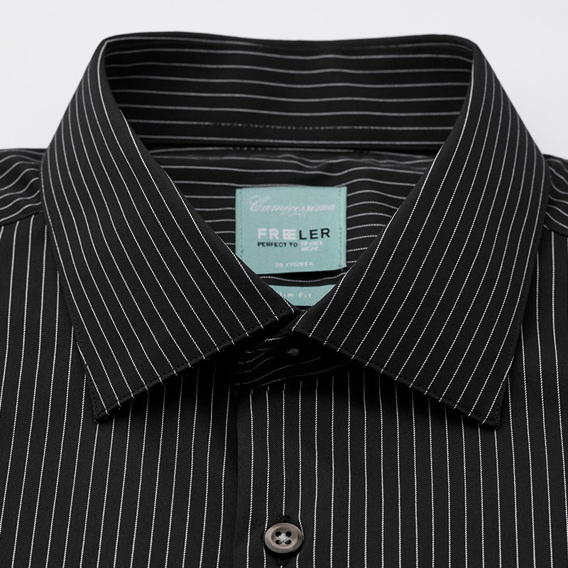 恺米切夏季商务休闲男士条纹短袖衬衫黑色弹力修身百搭衬衣