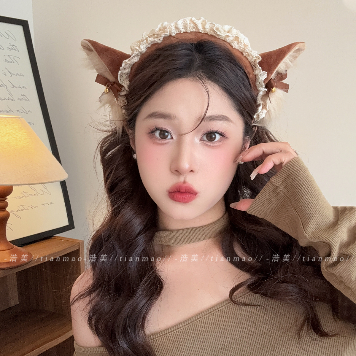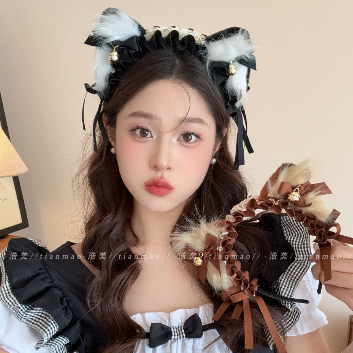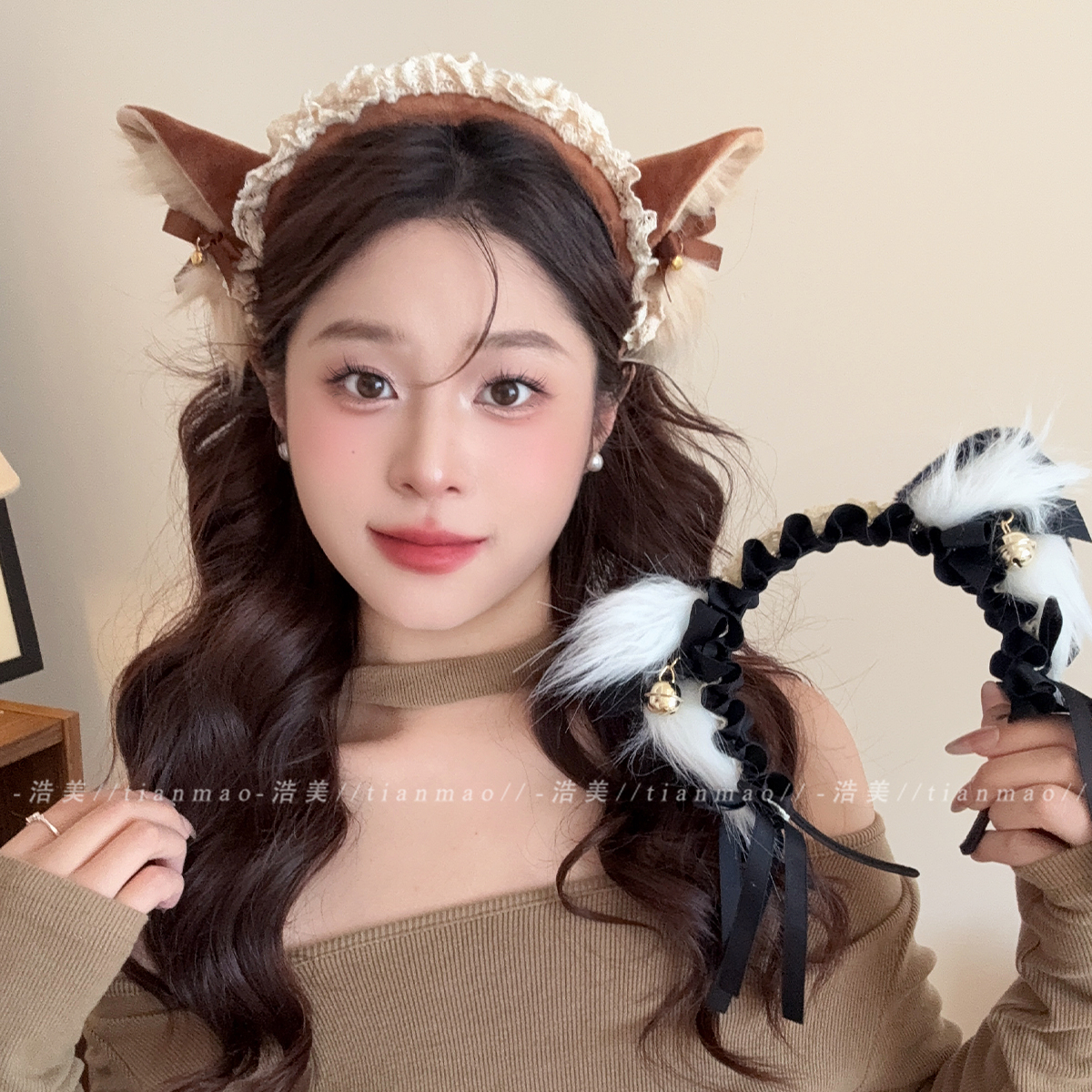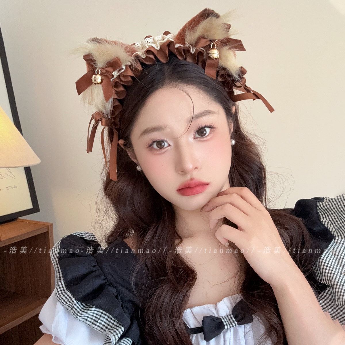甜美毛绒猫耳朵发箍女2025新款小铃铛高颅顶压发拍照道具头箍发捆