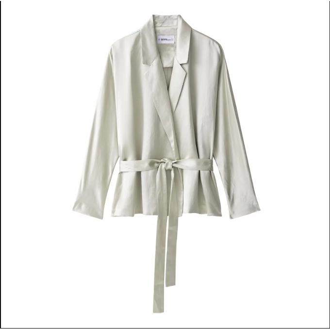 欧美跨境女装秋新款缎面系带修身西装外套纯色高个子气质时尚套装