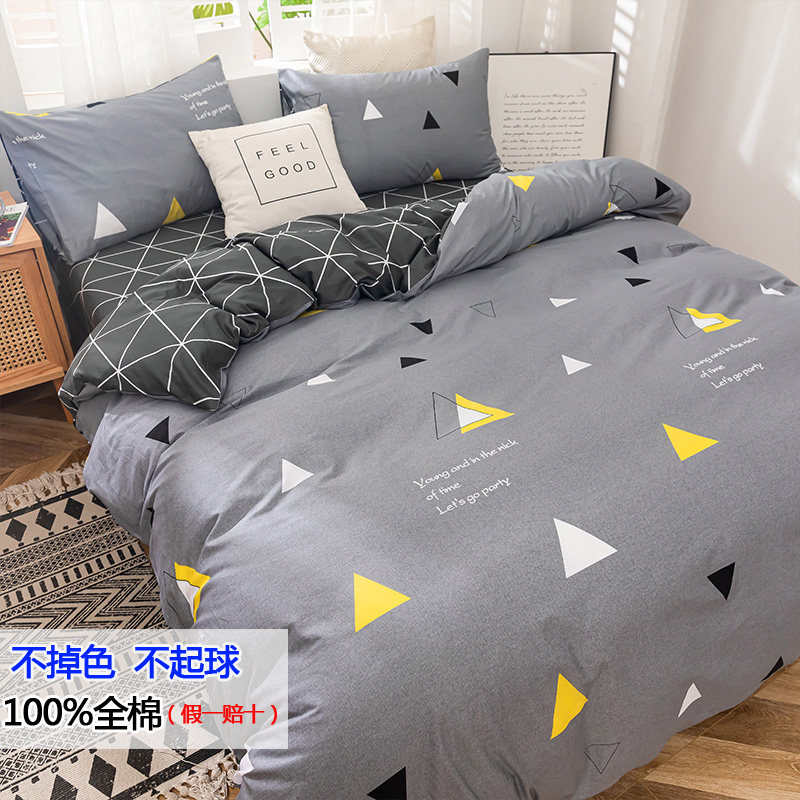 全棉四件套单双人纯棉被套床单1.5/1.8米床上用品四季通用三4件套