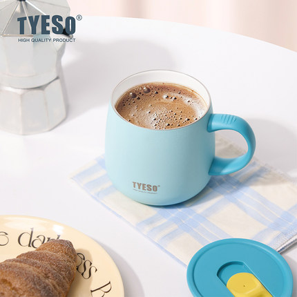 tyeso不锈钢保温杯陶瓷内胆办公室咖啡杯女士高颜值早餐马克杯子
