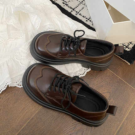 英伦风厚底复古JK乐福鞋女2025新款布洛克小皮鞋森系棕色圆头通勤