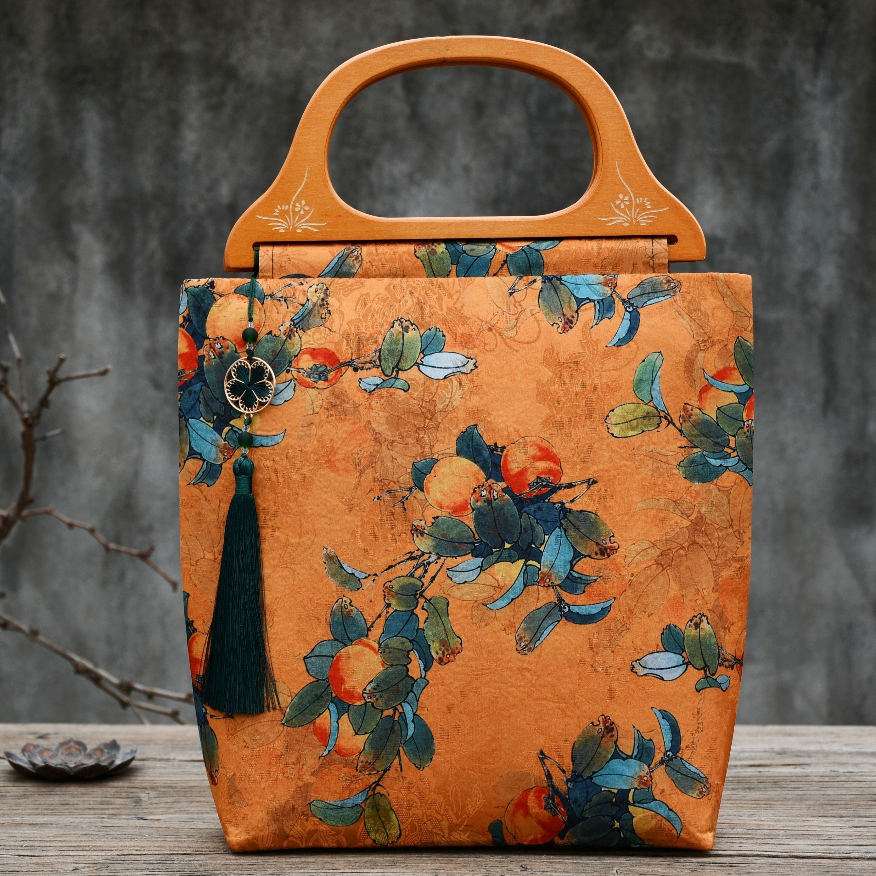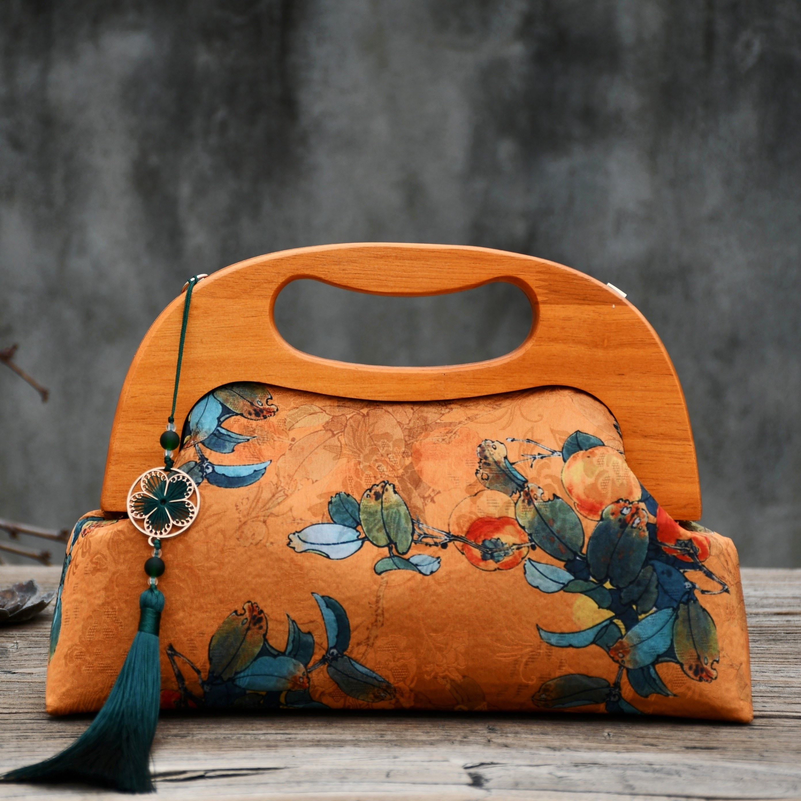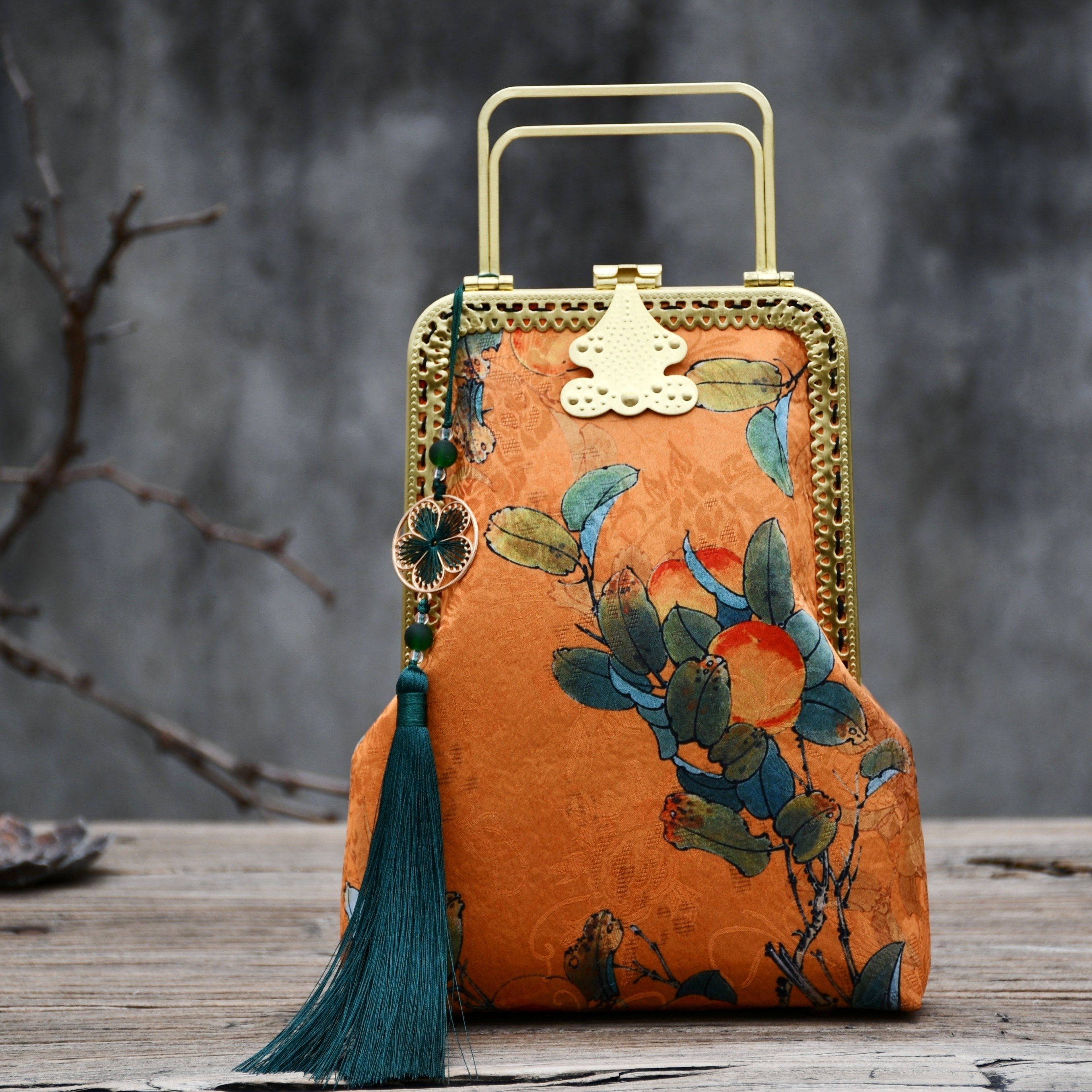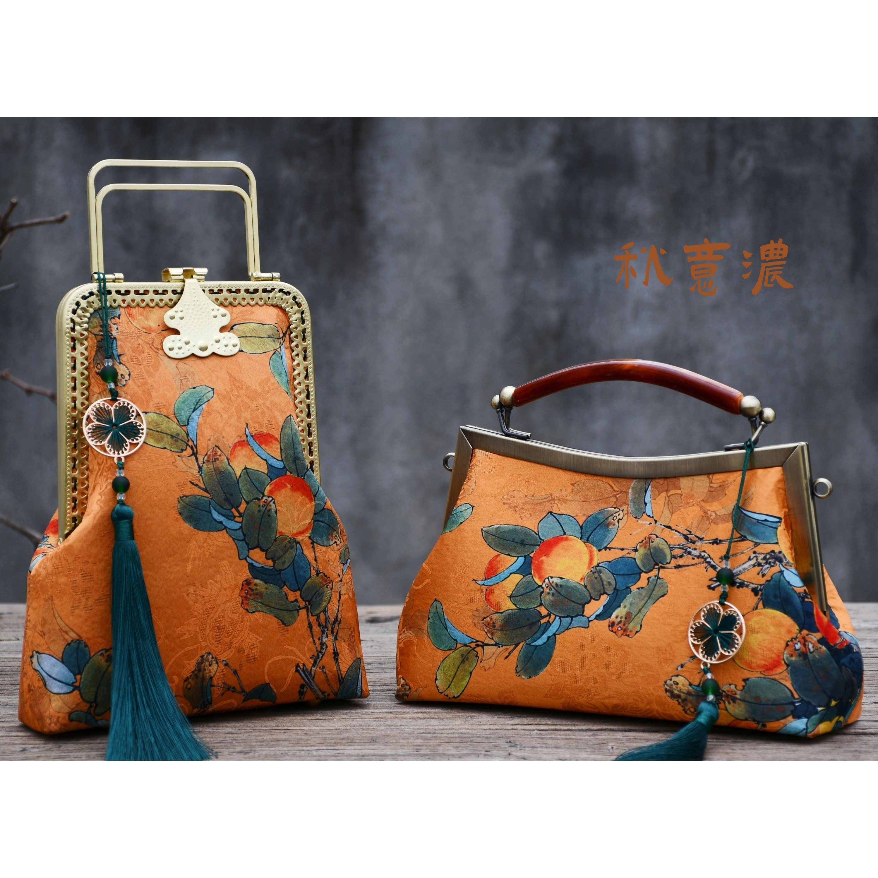 柿柿如意-原创花萝真丝旗袍包中国风包非遗手工包口金包材料包