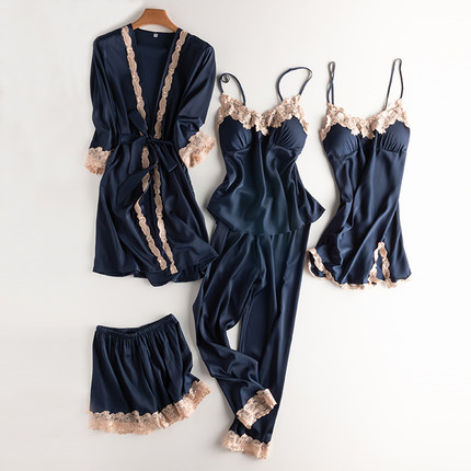 性感睡衣女2026春季新款冰雪丝五件套可外穿长袖家居服吊带睡裙夏
