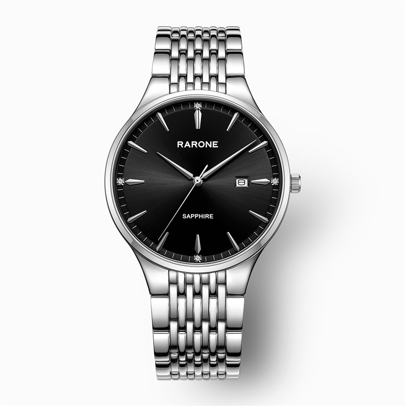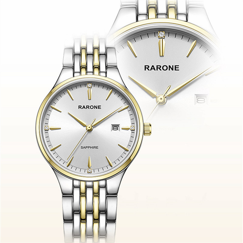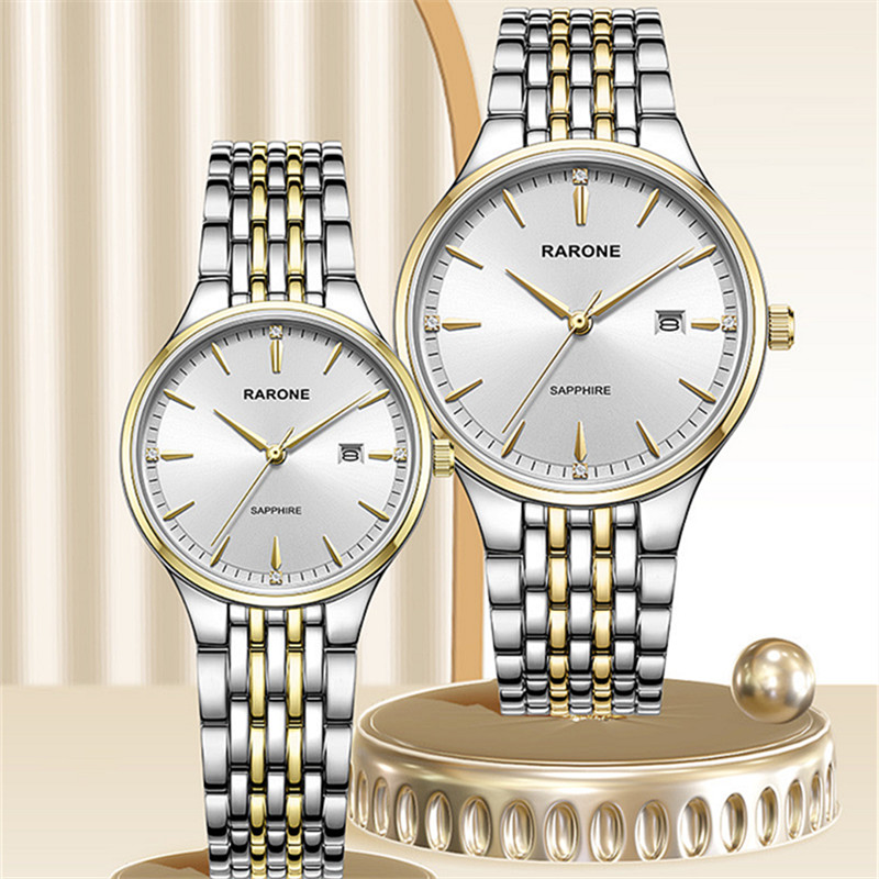 新款雷诺表超薄休闲简约石英表日历女表钢带防水情侣表男表832045