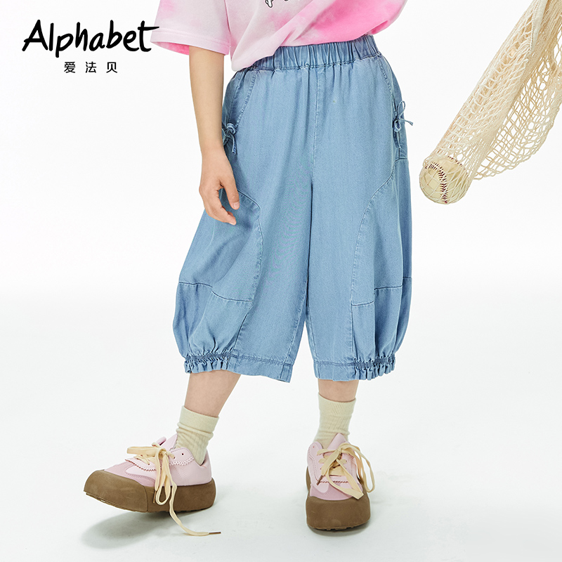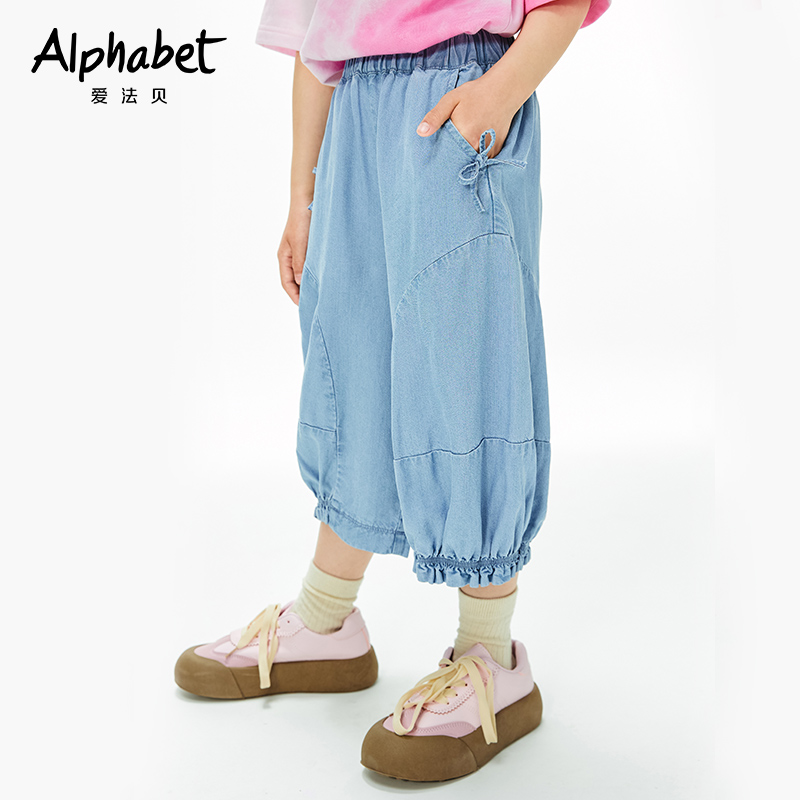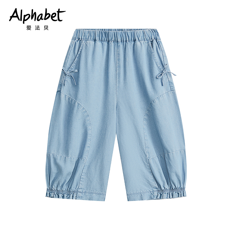 爱法贝2025夏季新款女童牛仔七分裤宽松儿童休闲裤子薄中大童装