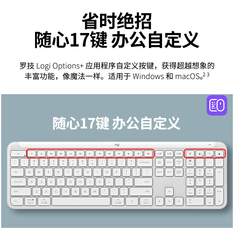 罗技K950无线纤薄键盘蓝牙双模MAC静音长续航商务办公电脑家用