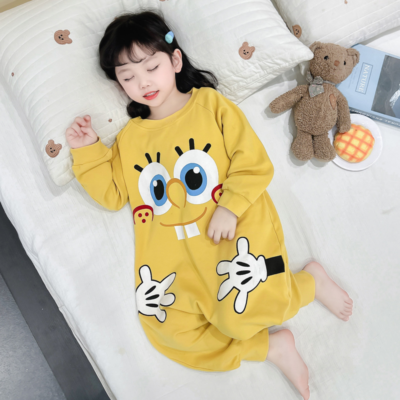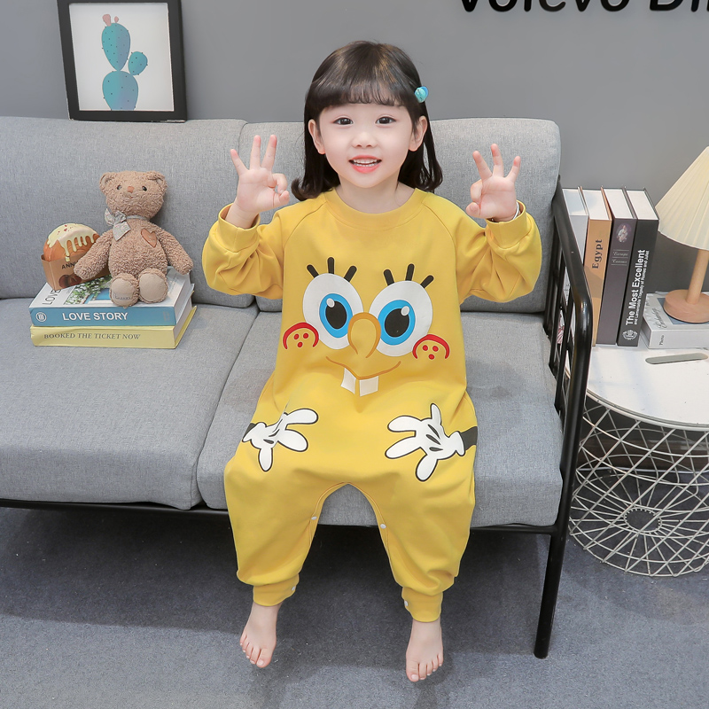 儿童春秋连体睡衣2025新款女童宝宝卡通可爱海绵宝宝防着凉家居服