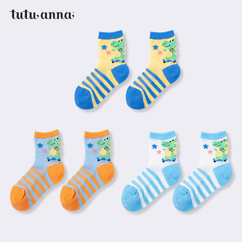 tutuanna袜子 儿童 春秋格子蕾丝袜口花边舒适亲肤柔软不勒脚短袜