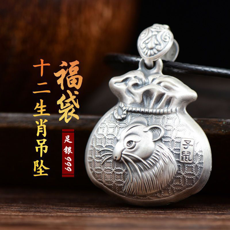 【好运】纯银S999十二吊坠足银鼠牛虎兔龙蛇马羊猴鸡狗猪男女项链