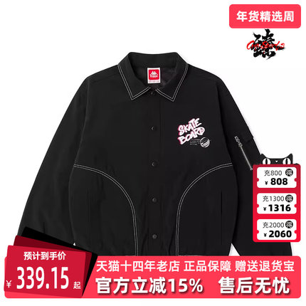 Kappa卡帕男子翻领外套新款女子运动单排扣茄克休闲上装