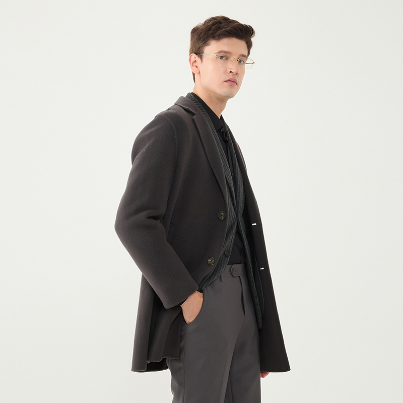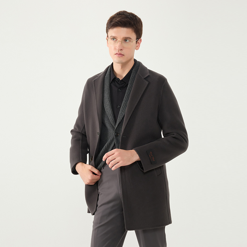 【双面呢】DIDIBOY冬季款男士商务驳领中长款保暖羊毛呢大衣外套