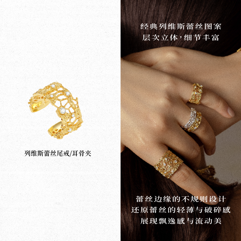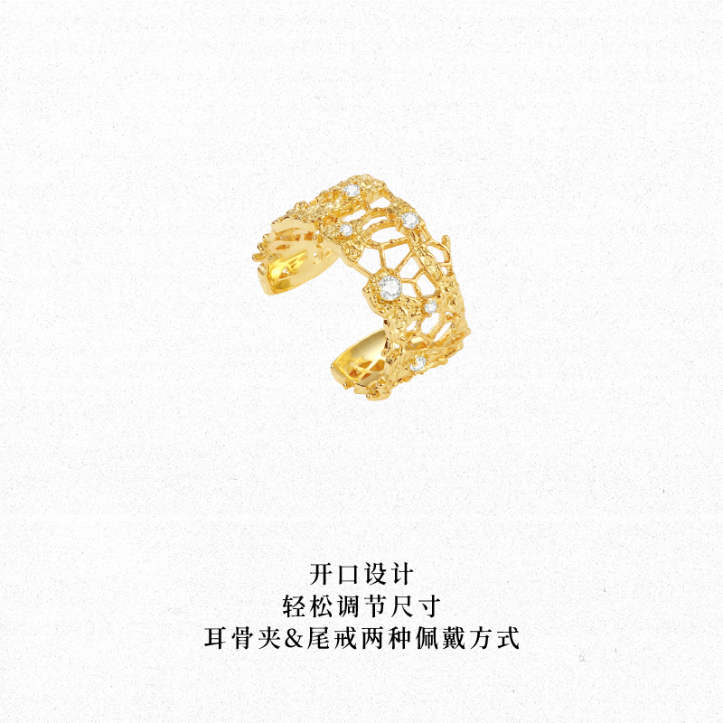 OOAK列维斯蕾丝系列925银开口尾戒耳骨夹简约时尚品质戒指