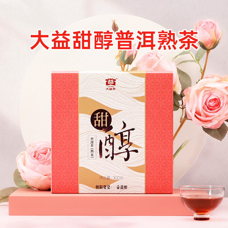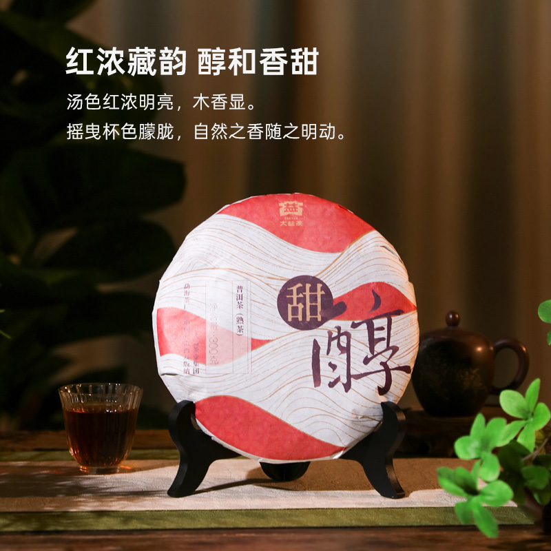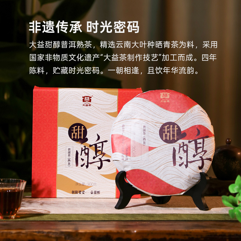 大益普洱茶 甜醇普洱熟茶饼茶300g四年陈料云南勐海官方旗舰店