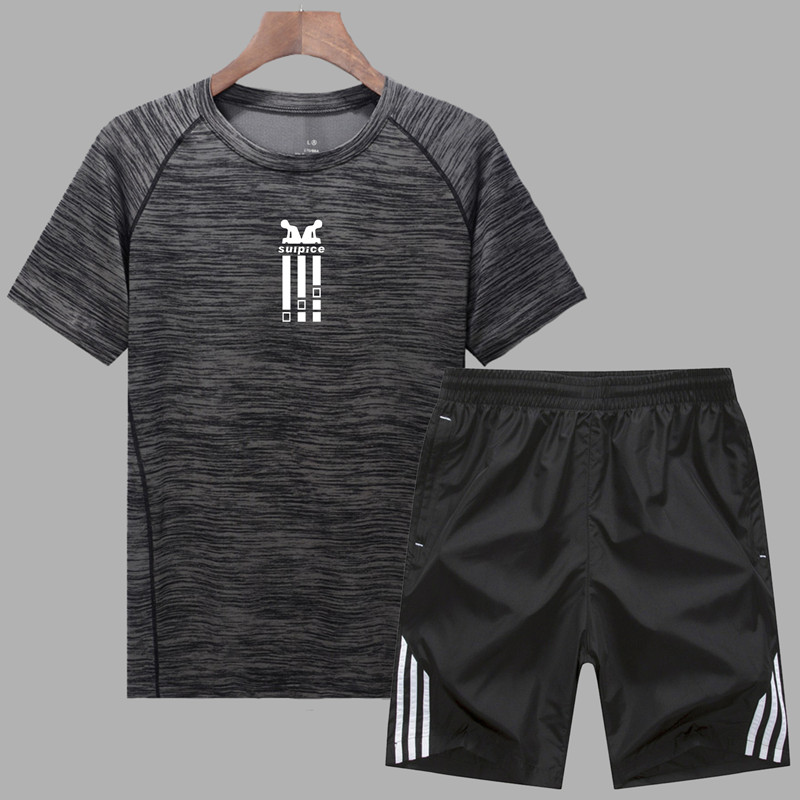 运动T恤男速干衣服夏季宽松大码短袖冰丝弹力透气健身晨跑步套装