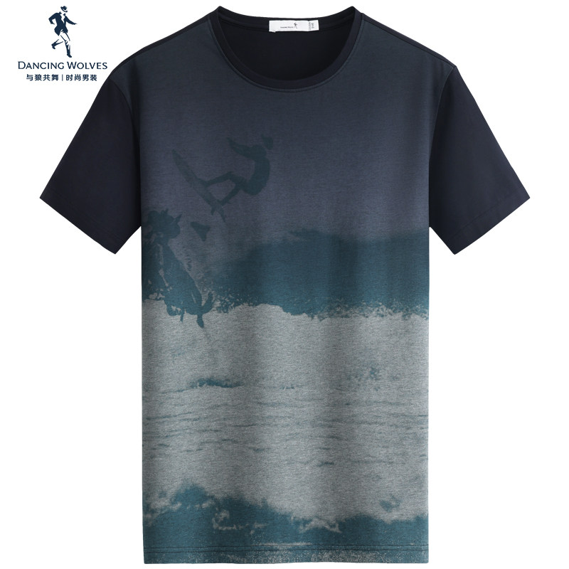 【水墨印花】与狼共舞纯棉圆领短袖T恤男2025夏季新款休闲短t男