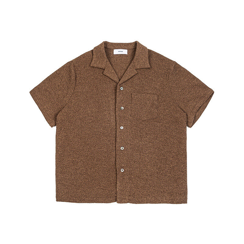 复古美式夏天古巴领男士短袖衬衫肌理针织半袖衬衣夏季老钱风寸衫