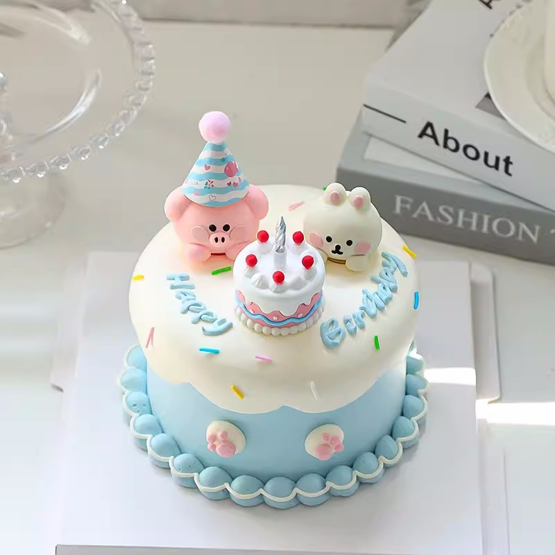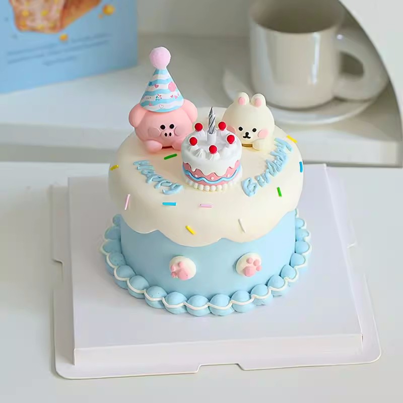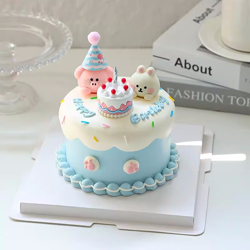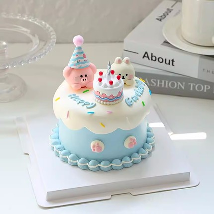 网红小动物蛋糕装饰摆件卡通兔子小猪烘焙蛋糕甜品生日插件配件
