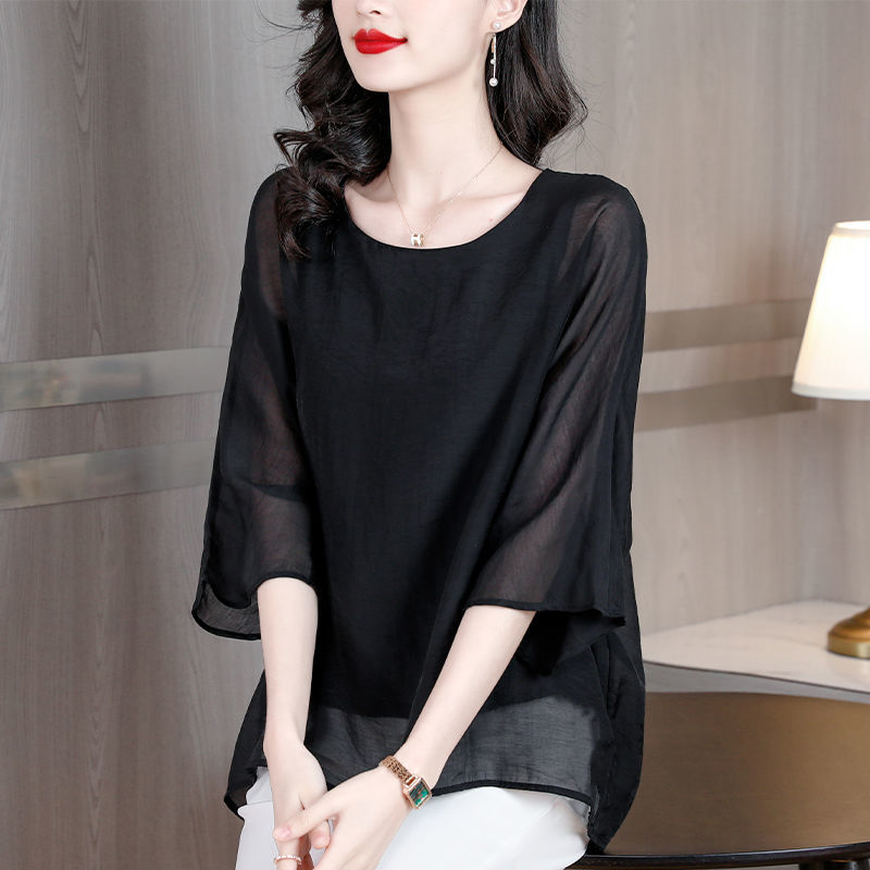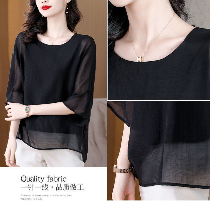 雪纺衫妈妈装女短袖宽松上衣夏季新款胖mm洋气小衫中袖大码遮肚