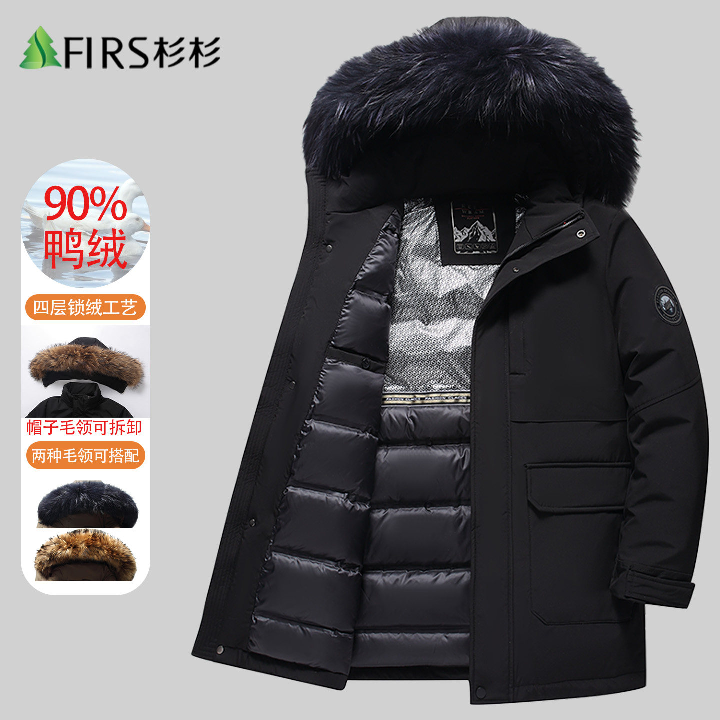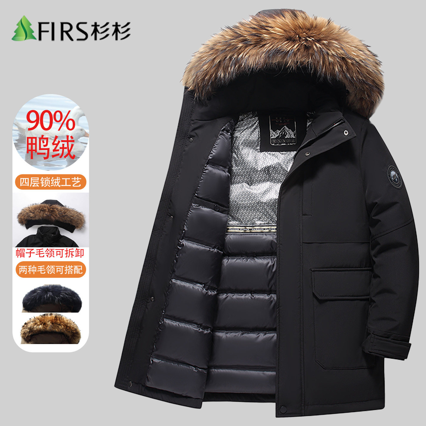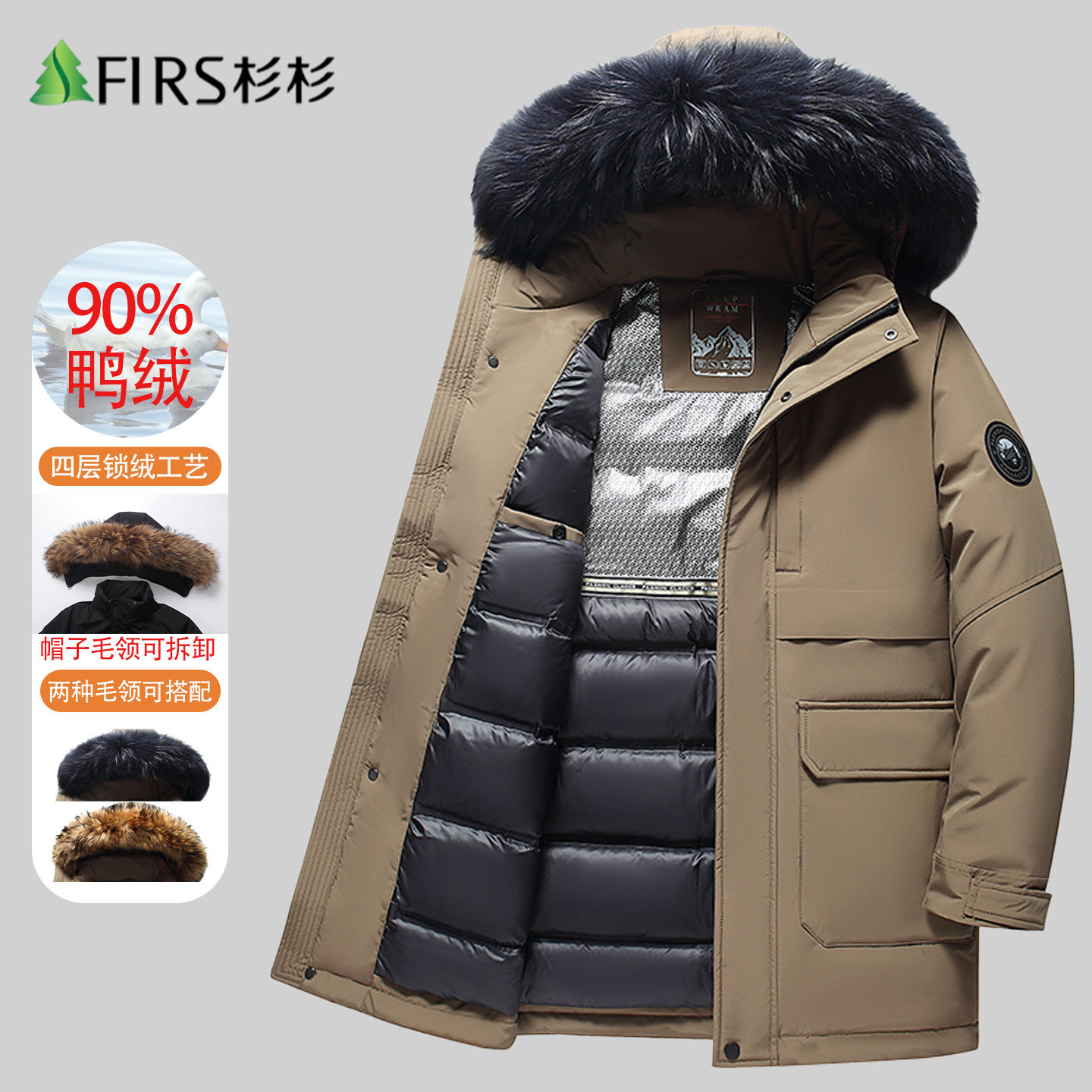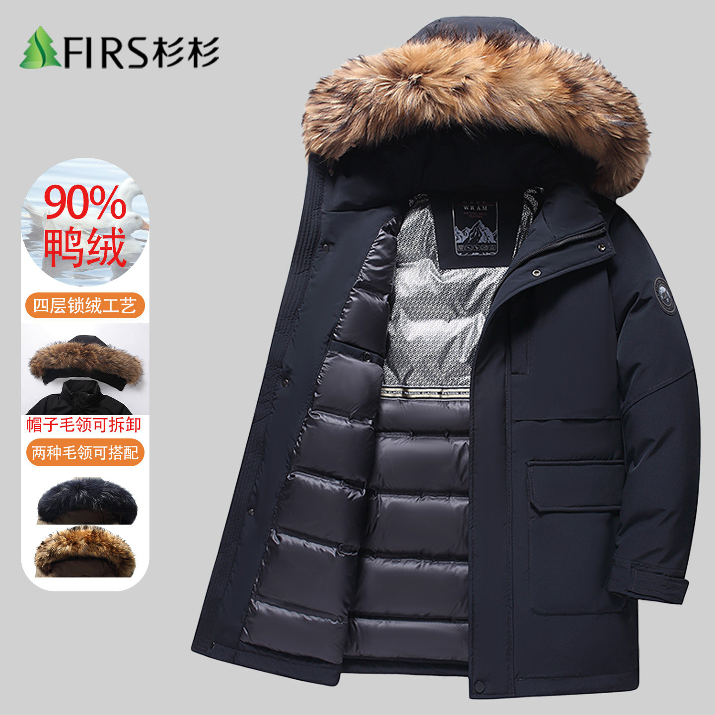 杉杉羽绒服男中长款加厚貉子毛领冬季爸爸装2025长款保暖休闲外套