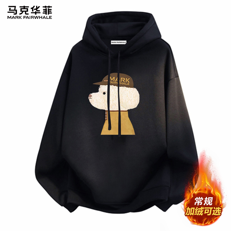马克华菲连帽加绒加厚卫衣男士秋冬季情侣美式上衣服男款印花外套