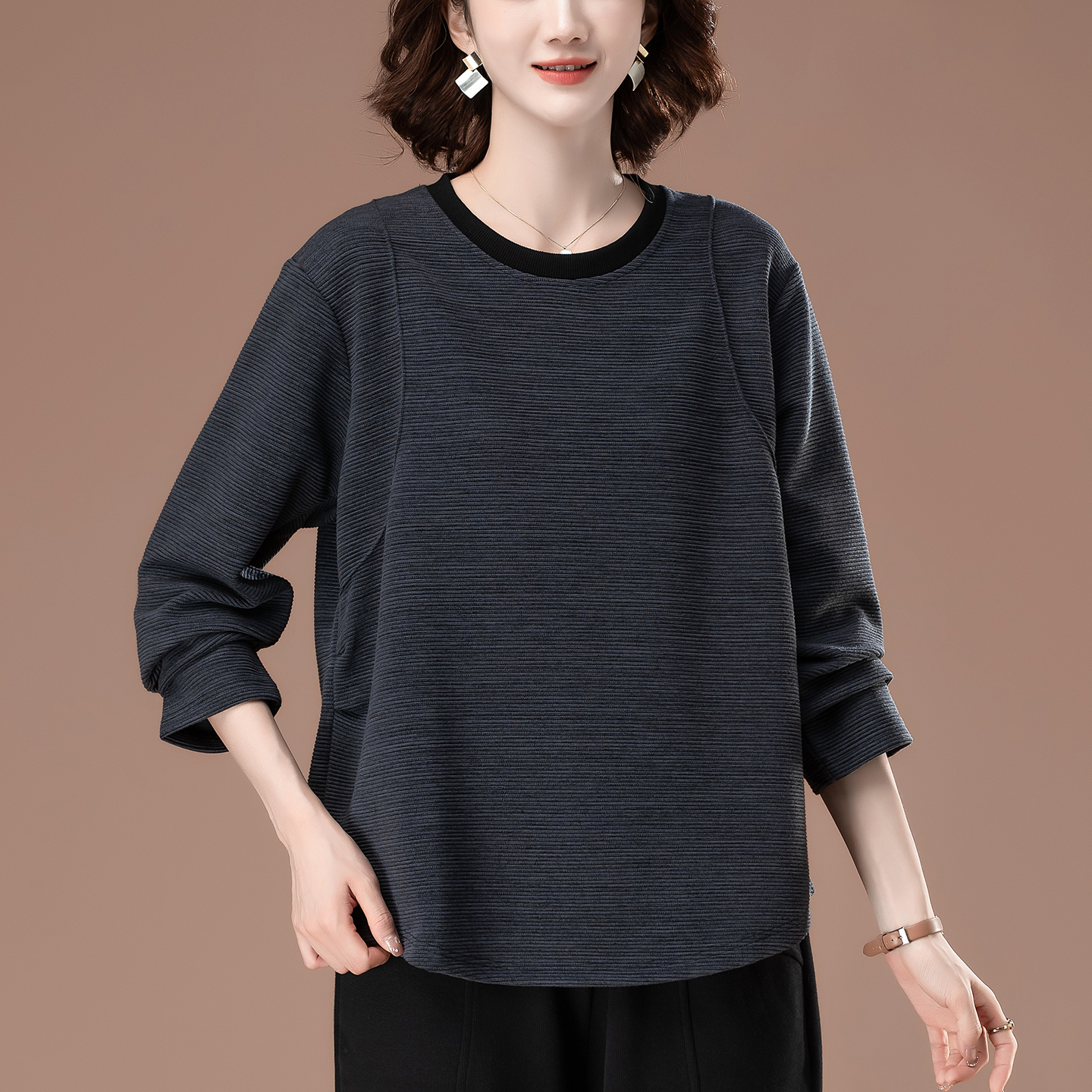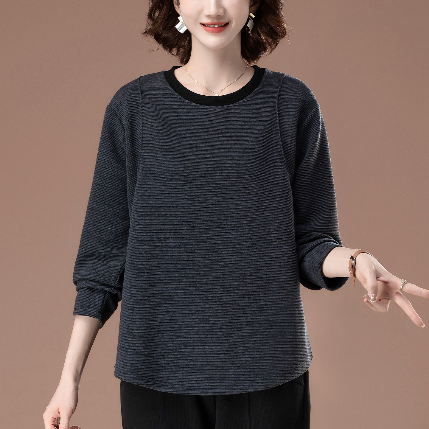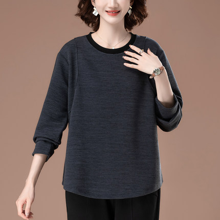 加肥加大码长袖t恤春秋新款中年妈妈百搭休闲遮肉显瘦内搭打底衫