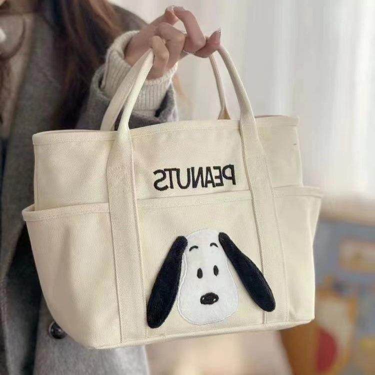 卡通刺绣史努比帆布包大容量手提单肩包简约时尚上班族便当包