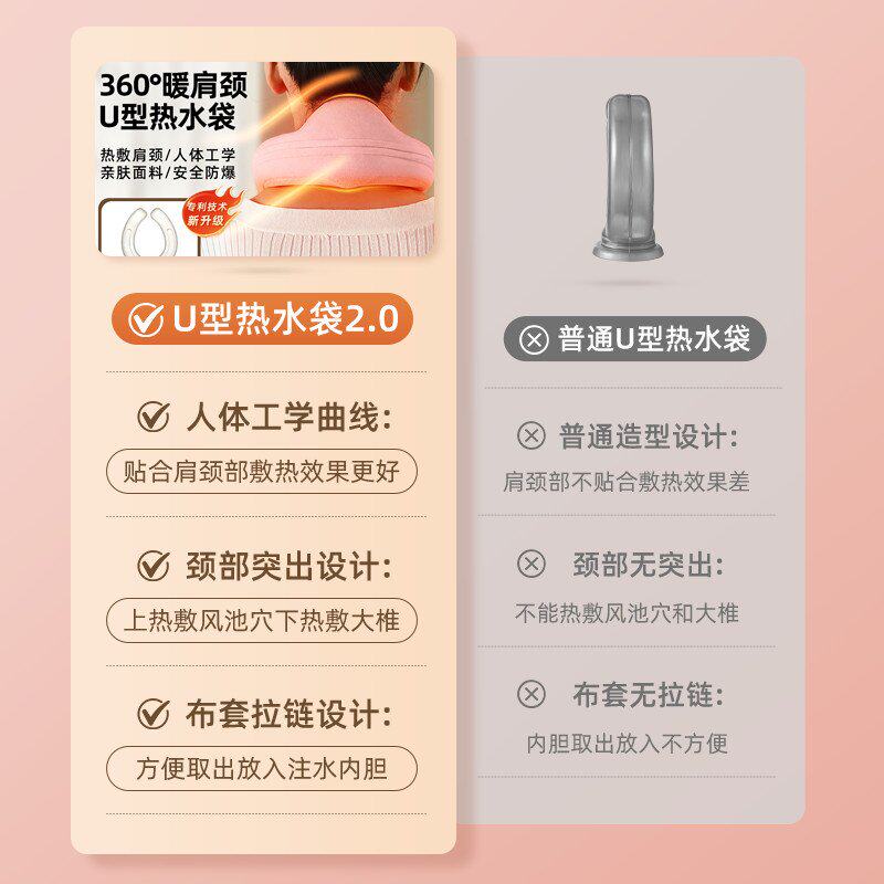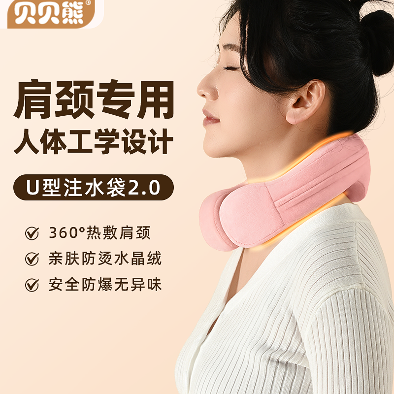 工程学2.0颈椎U型注水热水袋护颈防爆暖水袋热敷脖子头部挂脖落枕