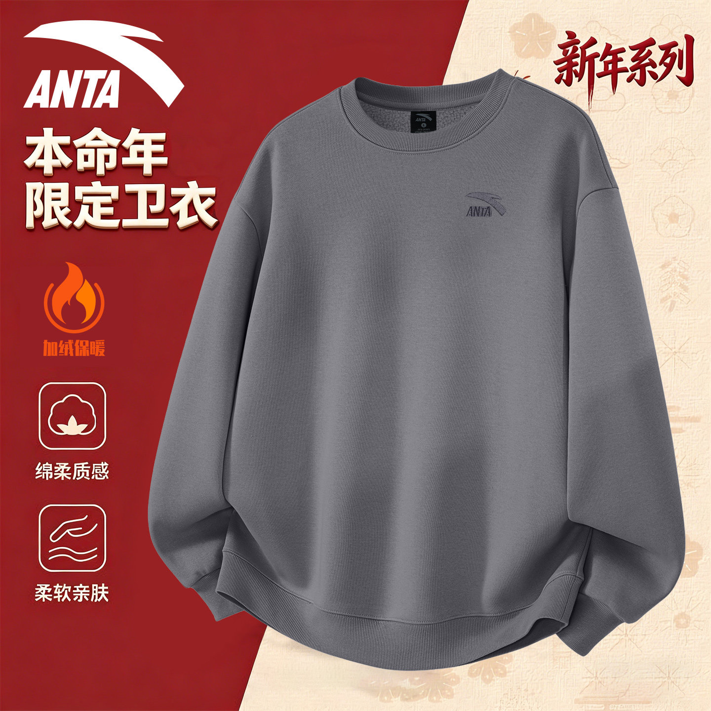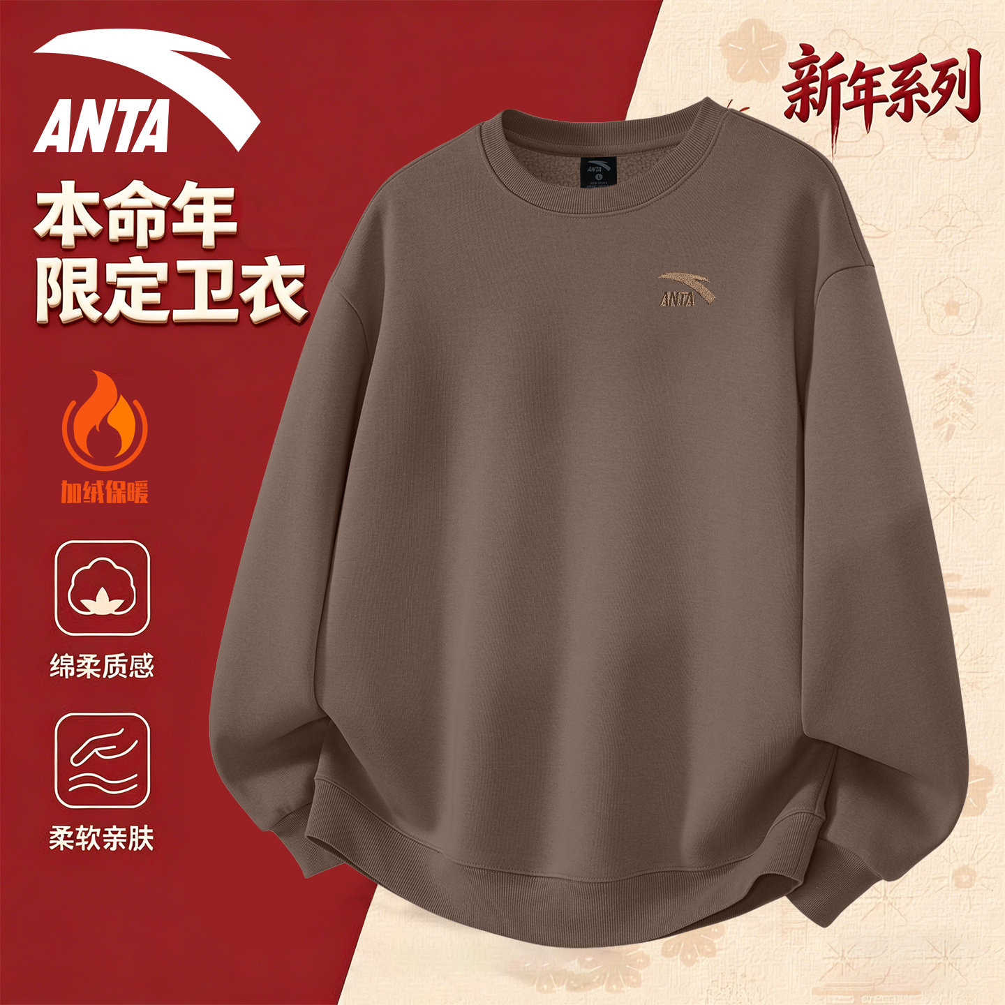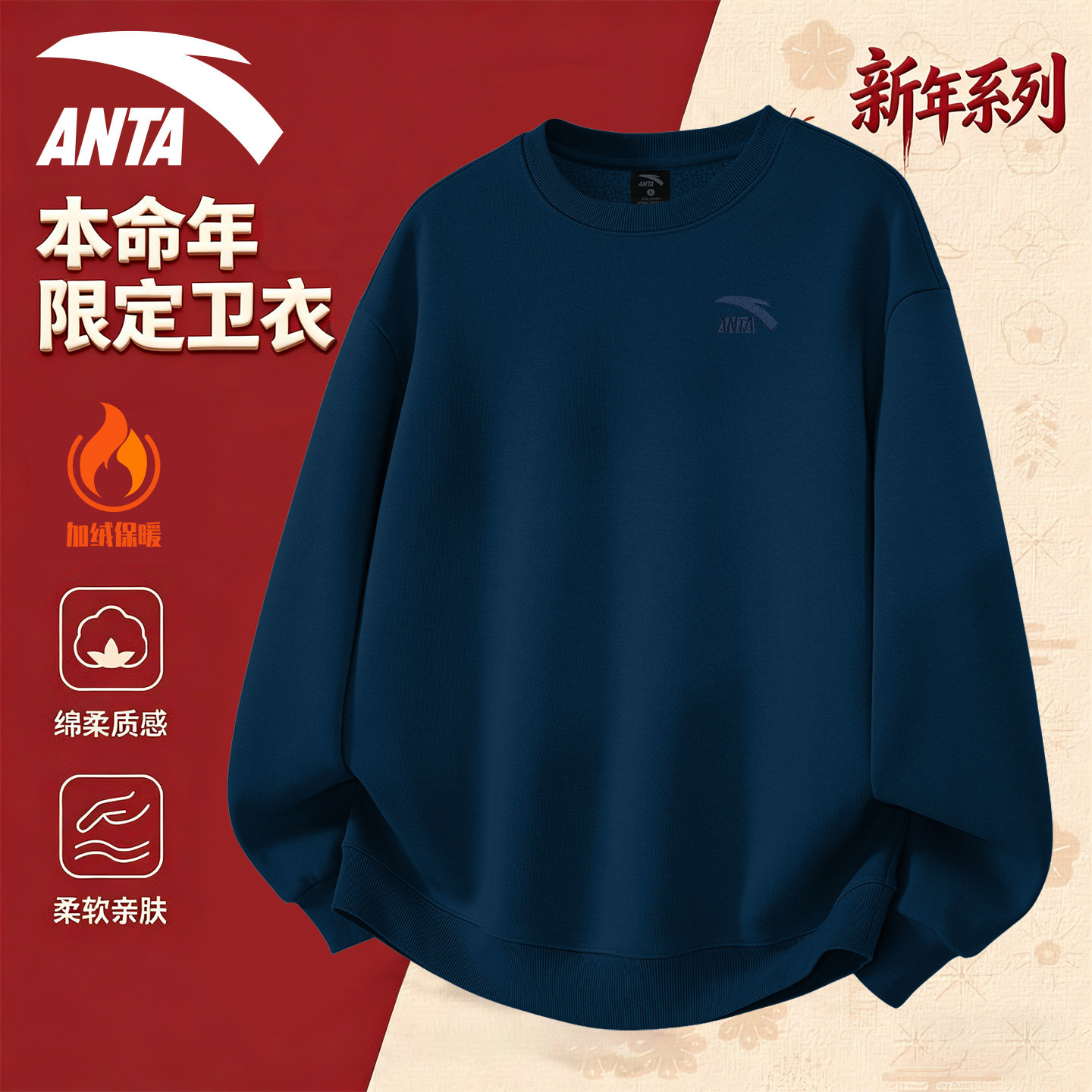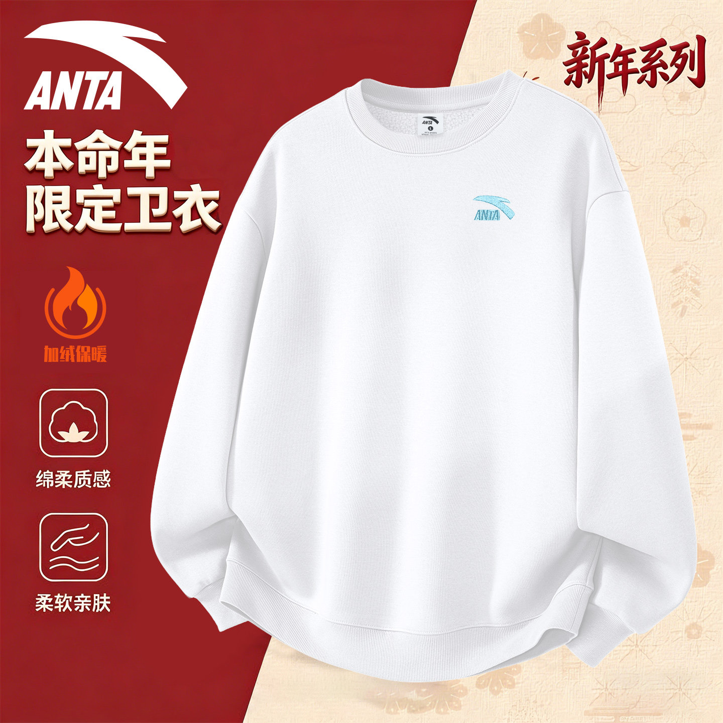 安踏加绒卫衣男女款2026新款保暖红色圆领运动上衣情侣长袖拜年服